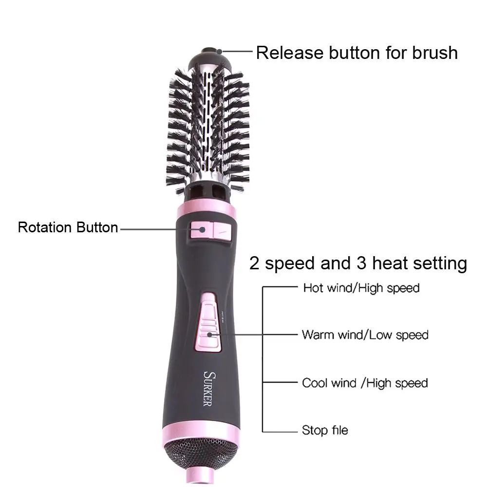 Особенности: Эргономичный обтекаемый дизайн корпуса, легко держать и работать. 2 скорости и 3 настройки тепла. Две сменные кисти и номинальная мощность 1000 Вт позволяют быстро высушить волосы и легко стилизовать волосы одновременно. С функцией вращения, может вращаться на 360 ° по часовой стрелке и против часовой стрелки, позволяет легко высушить волосы. Многофункциональная щетка для сушки волос, подходит для сушки, завивки различных стилей волос. 1,7 м 360 градусов поворотный шнур питания, вы можете вращать его под любым углом, не беспокоясь о обмотка. Параметры: Материал: АБС-пластик Напряжение: 220-240 В Частота: 50/60 Гц Мощность: 1000W Применимые волосы: сухие и влажные Защита от перегрева: Да Ручка: не складной Цвет: красный, фиолетовый Длина шнура: 1,7 м Режим сборки шнура питания: Поворот на 360 ° Размер: 38,5*6 см (длина * ширина) Посылка Содержание: 1 х Главная машина 1x38 мм трубка щетка/1x50 мм трубка щетка 1 x Руководство пользователя (несколько языков) Упаковка в коробке или без коробки.