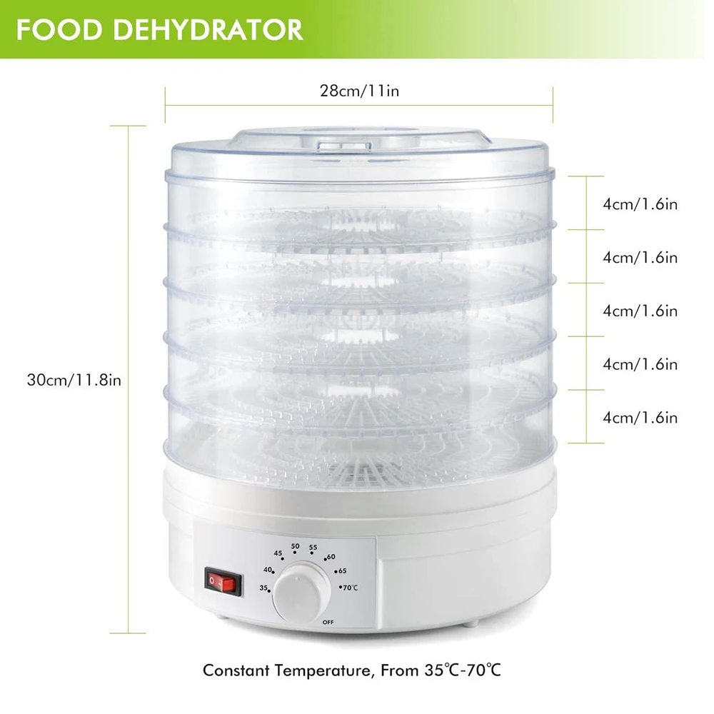 Вы сможете легко создавать вкусные лакомства «сделай сам», такие как банан или яблочные чипсы, рулоны фруктов и говядины, и можете с гордостью сказать вам, что они действительно самодельные. Для тех, кто любит обезвоженные лакомства, но не любит хлопот, этот простой в эксплуатации автоматический Дегидратор является идеальным лечением-просто нарезать, сезон, и закуска на что-то восхитительно здоровое. Характеристика: Профессиональный Дегидратор еды Отлично подходит для сушки овощей и трав. Сделать чай с цветами, семенами, Листья и травяные стебли. Сушит фрукты, мясо и овощи, чтобы сделать идеальную закуску 5 лотков-без BPA Внутренняя рабочая температура до 70 градусов C; Тихая работа Электрические нагревательные катушки производят конвекционный поток воздуха для равномерно сушеной пищи Технические характеристики Диапазон термостата: 95 -155 градусов F / 35 ℃-70 ℃ Материал: АБС-пластик Цвет: белый Мощность: 350 Вт Напряжение: 110-120 в Размеры: 11 "x 11" x 12"