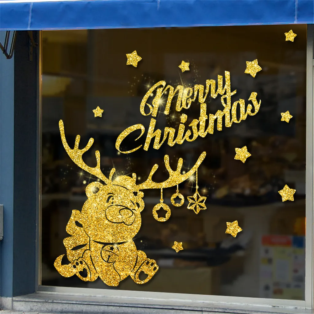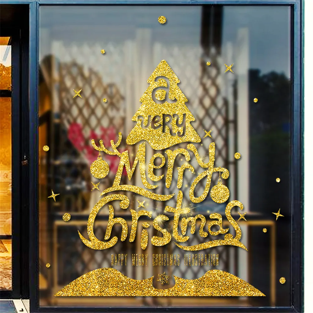 2020 Рождество золотой порошок окна наклейки на стену Наклейка Снеговик съемный домашний декор