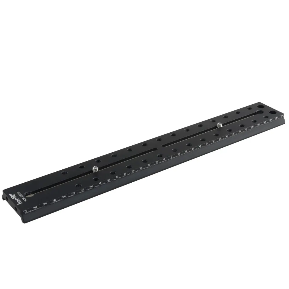 "Haoge HQR-MS350 длинная версия быстрое освобождение сдвижная пластина представляет собой Manfrotto типа Совместимость многоцелевой рельсовый с лазерной гравировкой шкалы сравнения с 1 мм с шагом повышения напряжения на обе стороны. Это позволяет легко регулировать узловую точку. 20 шт UNC 1/4 Винтовых резьбы для удлинения функций. Особенности: Алюминиевый сплав, точная обработка с ЧПУ, обработка поверхностного окисления. Высококачественный алюминиевый сплав используется для обеспечения светильник кого, но сверхпрочной поддержки. Технические характеристики: Материал: алюминиевый сплав Цвет: черный Длина: 350 мм Вес: 280 г Совместим с: Manfrotto: MVA500AH, MVA500A, 500AH, 501HDV, 502AH, 503HDV, 504HD, 509HD, 701HDV, 577, MH054M0-Q5, MH055M0-Q5, MH055M8-Q5 Benro: KH-25, KH-26, S2, S4, S6, S8 Sirui: VH15, VH10, VH-20, BCH-20, V125 Комплекпосылка ция: 1 x быстросъемная длинная пластина Haoge HQR-MS350 Винт с шестигранным углублением 2x1/4 дюйма 1 х предохранительный винт 1 x винт 1/4-3/8 2 x шестигранный ключ"