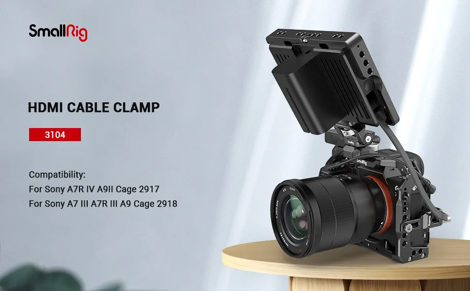 SmallRig HDMI зажим 3104 Предназначен для Sony A7 III A7R III A7R IV Cage 2917/2918. Крепится к клетке с одним винтом 1/4 ”-20. Кроме того, этот HDMI замок оснащен винтом для блокировки usb-кабеля. Это предотвращает случайное падение кабеля HDMI.