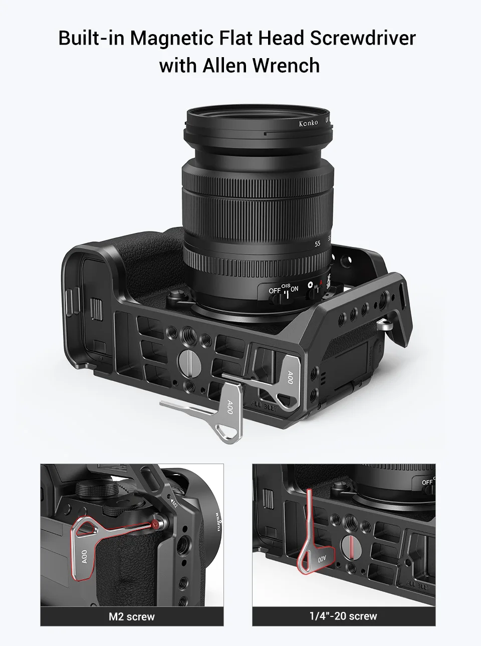 SmallRig клетка для камеры FUJIFILM X-S10 3087Это опалубка, Полная Клетка, предназначенная для обеспечения защиты и крепления аксессуаров. Клетка крепится к камере с помощью винта 1/4 "-20 на дне и винта m2 на правой стороне для дальнейшей безопасности, чтобы предотвратить скручивание. С несколькими резьбой 1/4 "-20 и ARRI 3/8"-16 для аксессуаров, таких какБоковая ручка HSN2093,2260 для холодной обуви,Крепление для монитора 2903, И2165 с верхней ручкой. Клетка интегрируется с холодной обувью сверху для микрофона и светильник, и поставляется с Рельсом NATO на левой стороне позволяет устанавливать2187 с боковой ручкой. Дно поставляется с резьбой 1/4 "-20 и 3/8"-16 для прикрепления пластины камеры, например, Manfrotto plate 1280 и APU2458. В комплект входит отвертка с плоской головкой и шестигранный ключ для крепления винта камеры и хранения в нижней части клетки. В нижней части встроена швейцарская тарелка Arca, которая позволяет устанавливать на головку штатива. Клетка поддерживает доступ ко всем кнопкам, ЖК-экрану и фиктивному кабелю аккумулятора. ОпциональноКабель HDMI зажим 1693Доступен отдельно для защиты порта HDMI.