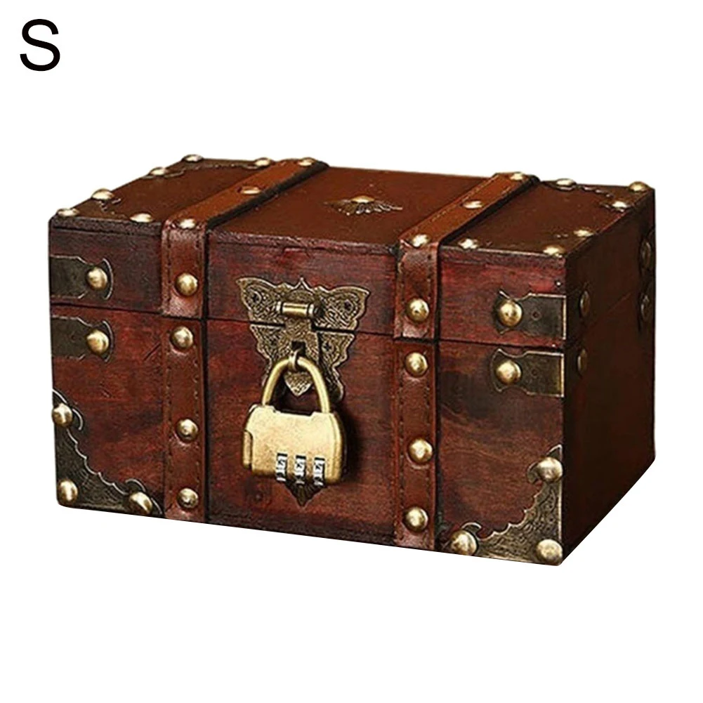 Винтажный сундук с сокровищами, деревянный ящик для хранения ювелирных изделий, чехол-держатель с замком