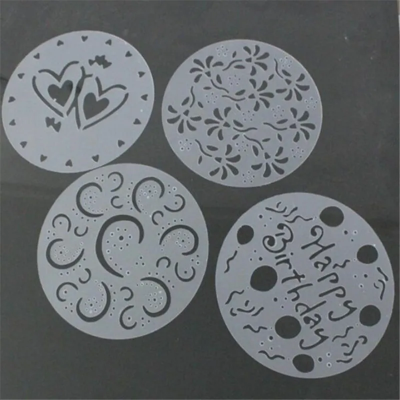 Особенности:[Цвет]: белый[Материал]: ПВХ[Использование]: форма для печати на торте, размещенная поверх торта, может использоваться в торте с какао-порошком, сахарной пудрой, зеленым чаем и т. д. из милых узоров! Красочные для вашего торта! Легко сделать красивый торт ~ ~ компактный и изысканный. Соотношение цены и качества! Подходит для всех видов муссов, кубиков торта, торта ко дню рождения, причудливого кофе и других украшенийПосылка входит:4 шт./компл. = 4 различных рисунка/комплект