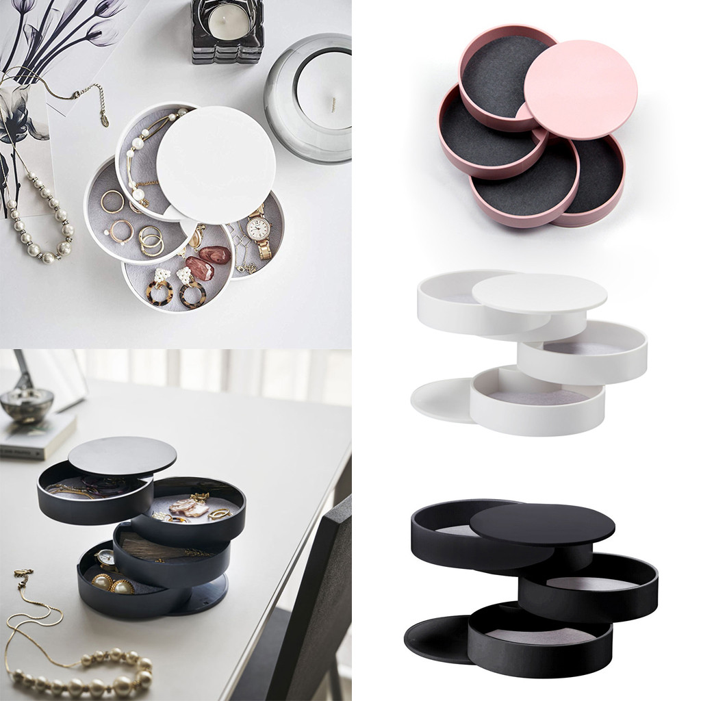 Коробка для хранения ювелирных изделий 4-Слои вращающиеся ювелирные изделия аксессуары ящик для хранения с крышкой