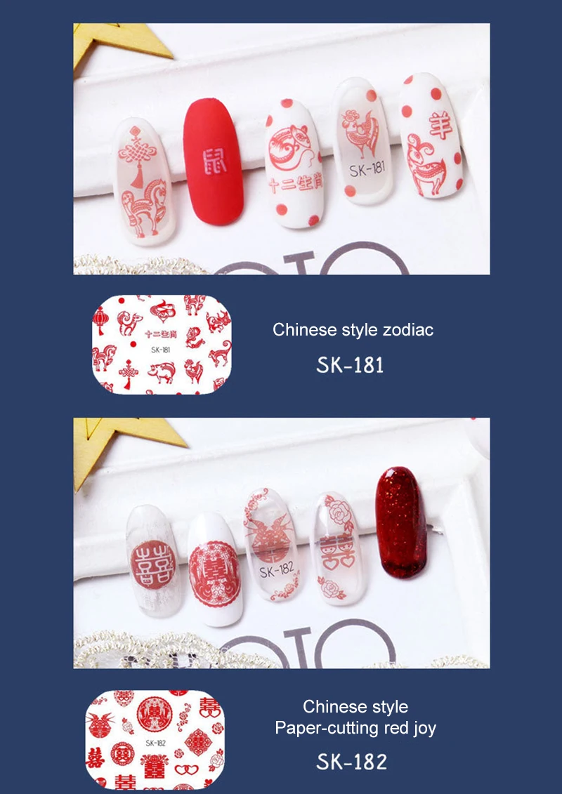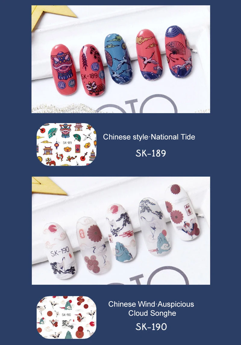 Модные наклейки для ногтей в китайском стиле имеют различные традиционные китайские элементы культуры, такие как Пекинская опера, макияж для лица, Зодиак, танец льва, китайские иероглифы, древние пейзажные картины и так далее.Уникальное сочетание цветов, художественные наклейки для ногтей, модные и классные.