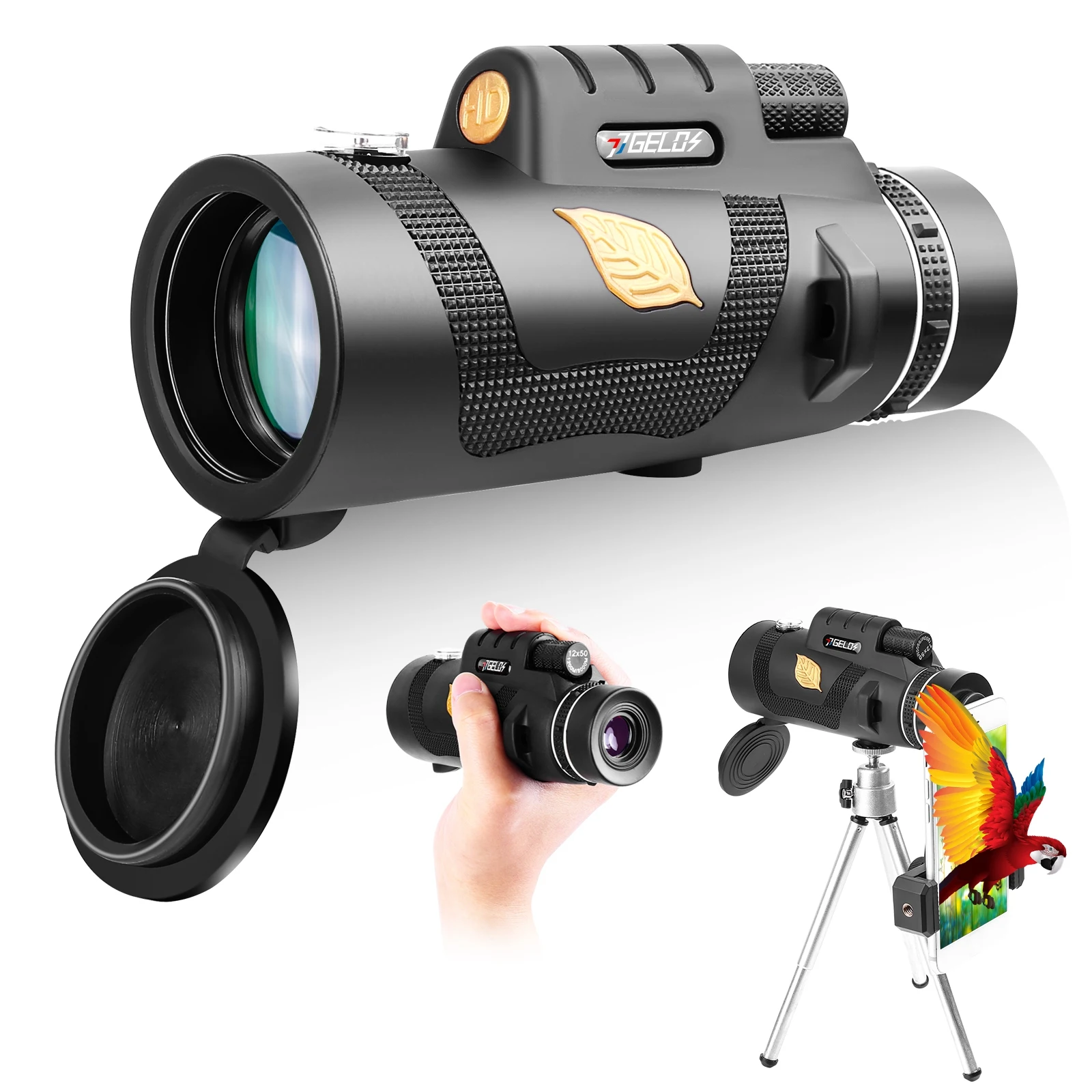 12X50 HD Monocular Telescope FMC BAK4 Prism Binoculars with Smartphone Holder & Tripod for Hunting Hiking Traveling Bird Watching