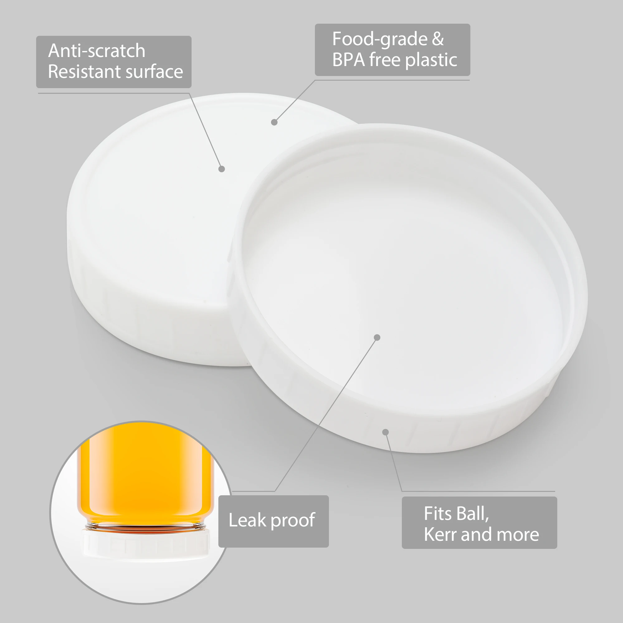 Достаточное количество: набор из 10 белых ребристых крышек без подкладки для хранения банок Мейсон, достаточно для ежедневного использования Качественный материал: пластиковые обычные крышки с винтами изготовлены из пищевого пластика, без BPA, экологически чистые и прочные Простота в использовании: края имеют широкую резину для удобного захвата; Винты на крышках для легкого открытия и закрытия Белые пластиковые крышки для хранения: белые крышки легко маркировать содержимое с помощью сухого стирающего маркера; Дизайн без подкладки, легче чистить Универсальная: консервировочная крышка подходит для обычных/широкоугольных банок и других банок с отверстиями 70 мм/86 мм Особенности: Белая, Ребристая Крышка легко открывается. Герметичный дизайн, уплотнение лучше. Отличные крышки для ваших консервов. Используйте эти пластиковые крышки для универсального хранения. Давая вам много, чтобы иметь возможность хранить ваши товары с легкостью. Характеристики: Материал: пластик Цвет: белый (как на фотографии) Количество: 10 шт. Размер A: Диаметр прибл. 70 мм/2,7 дюйма Размер B: Диаметр прибл. 86 мм/3,4 дюйм (ов) Посылка включает в себя: 10 крышек для консервных банок Дружеские советы: Размер измеряется вручную, допускается небольшая погрешность в измерениях. Цвет на фото может немного отличаться от реального товара из-за особенностей цветопередачи различных мониторов. Особенности: Набор из 10 белых ребристых крышек без подкладки для хранения банок для каменщиков. Изготовлен из пищевого пластика, без BPA, экологически чистый и прочный. Края имеют широкую резину для удобного захвата. Крышки с винтами легко открываются и закрываются. Белые крышки легко маркировать содержимое с помощью сухого стирающего маркера. Дизайн без подкладки, легко чистить. Подходит для обычной пасти/широкой пасти и других банок с отверстиями 70 мм/86 мм. Размер A: Диаметр прибл. 70 мм/2,7 дюйма Размер B: Диаметр прибл. 86 мм/3,4 дюйм (ов) Полезные советы: Замеры делаются вручную, поэтому учитывайте небольшие погрешности. Цвет на фото может немного отличаться от реального товара из-за особенностей цветопередачи различных мониторов.