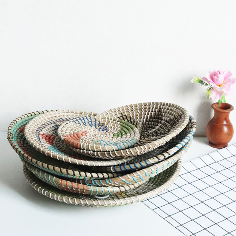 Тканая настенная корзина, Декор, натуральная бохо, чаша для фруктов, ротанговая подвесная декоративная для дома, спальни, гостиной, GXMA
