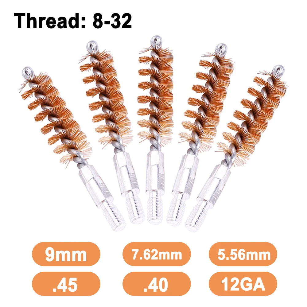 5 шт./компл. Набор щеток для чистки пистолета для 9 мм. 30 7,62 мм. 22 5,56 мм. 40 .45 12GA 40GA винтовочный пистолет фосфорная бронзовая буровая щетка чистящий инструмент
