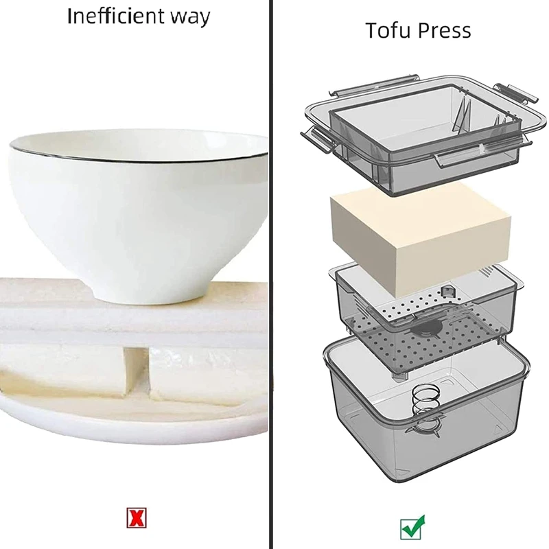 Привнесите вам новый и восхитительный вкус: как будто вы не выдавливаете старую воду из тофу, вы не можете попробовать в любых новых вкусах, но в радость, пресс для тофу может выдавливать всю воду из тофу и дарить невероятную текстуру и аромат.