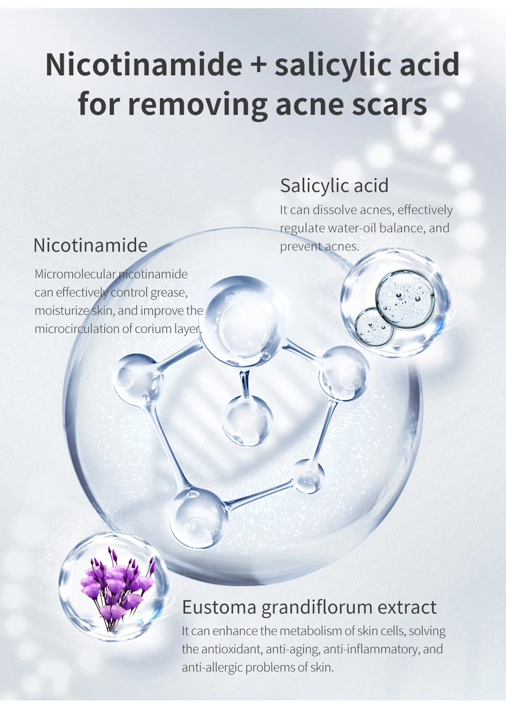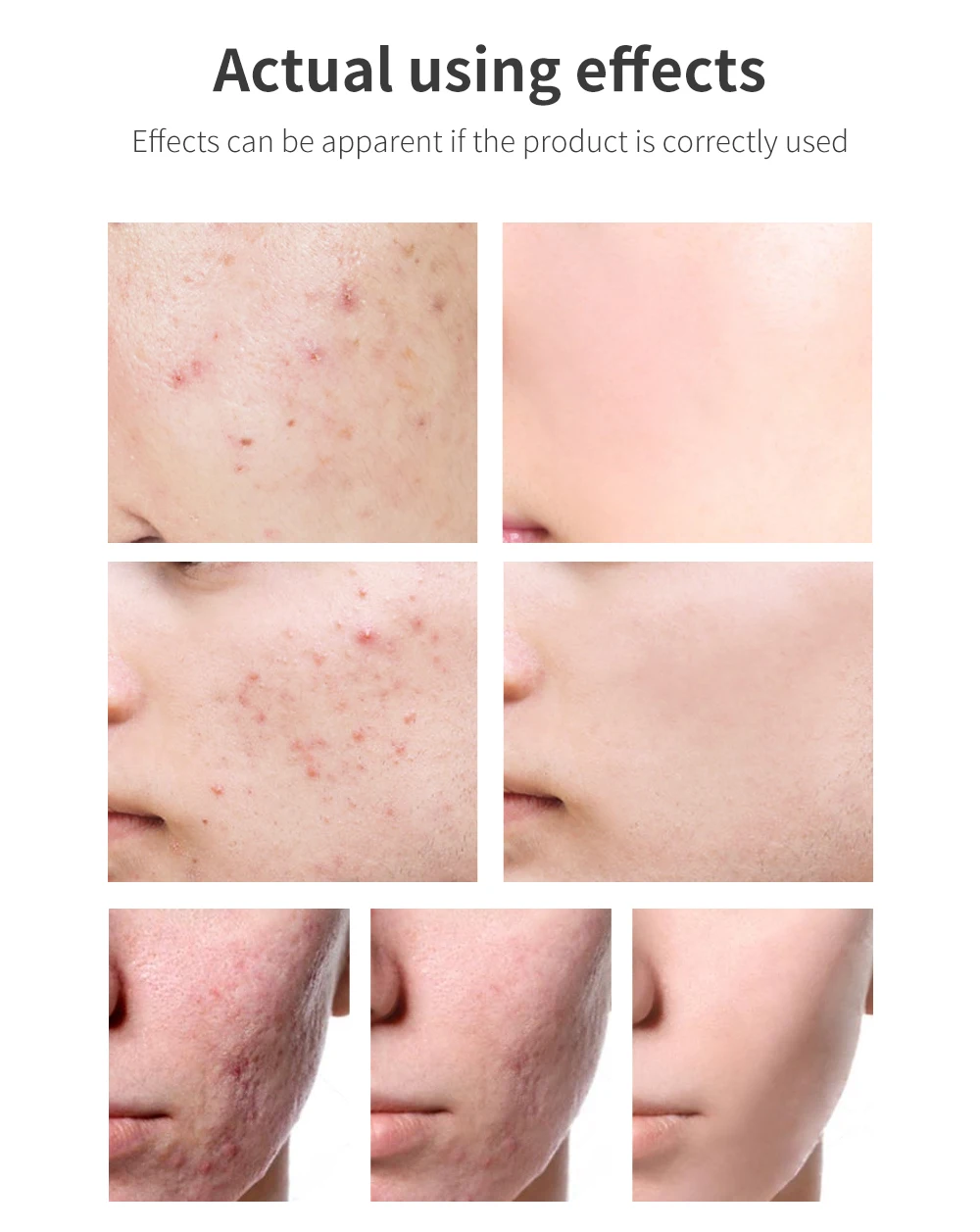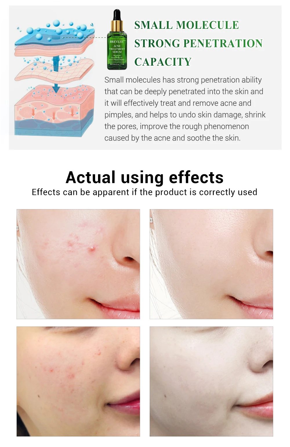 Эффекты: лечение и Удаление прыщей и прыщей, устранение повреждений кожи, сужение пор, улучшение грубого феномена, вызванного акне, и смягчение кожи