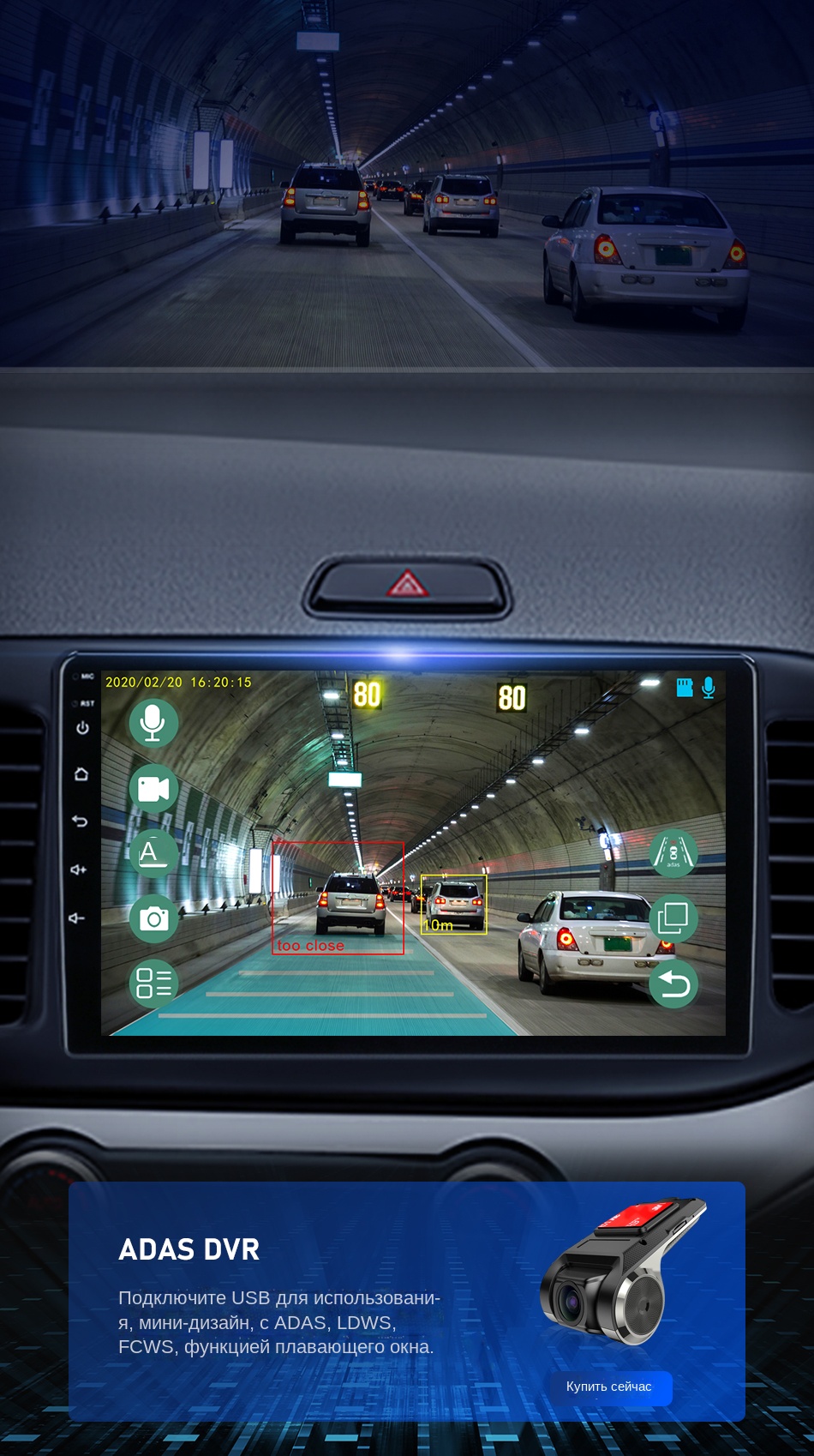 Поддерживает подключение к видеорегистраторУ ADAS. ADAS DVR имеет несколько встроенных ассистивных технологий вождения, вставляя высококачественную карту памяти TF для записи каждого момента вашего вождения.