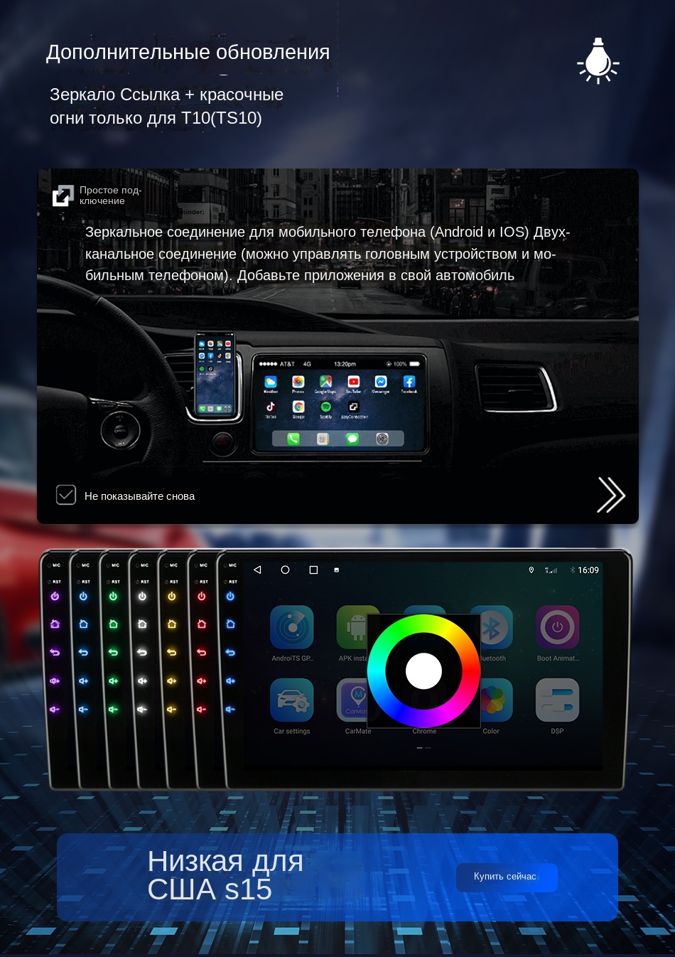 T0/S10/S11 поддерживает зеркальное соединение мобильных телефонов Android и IOS, экран мобильного телефона отображается на радиоэкране, вождение более удобное и умное