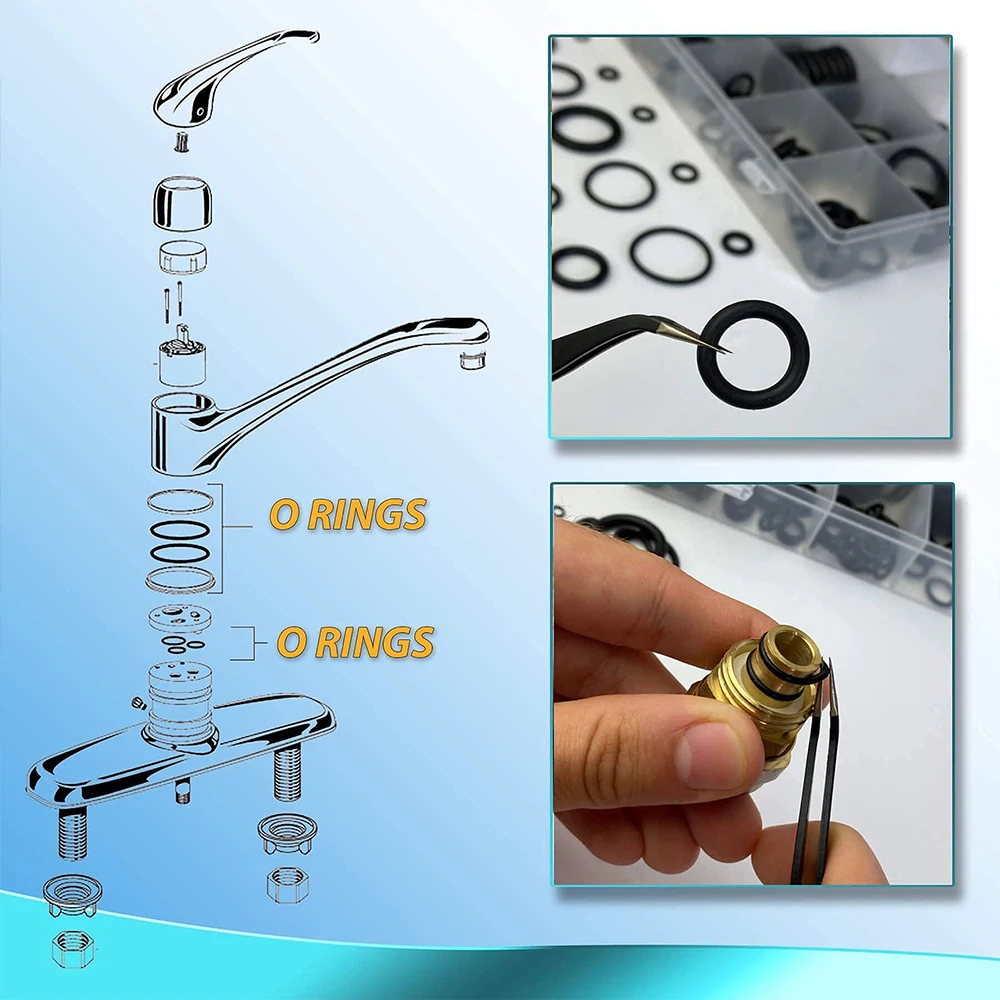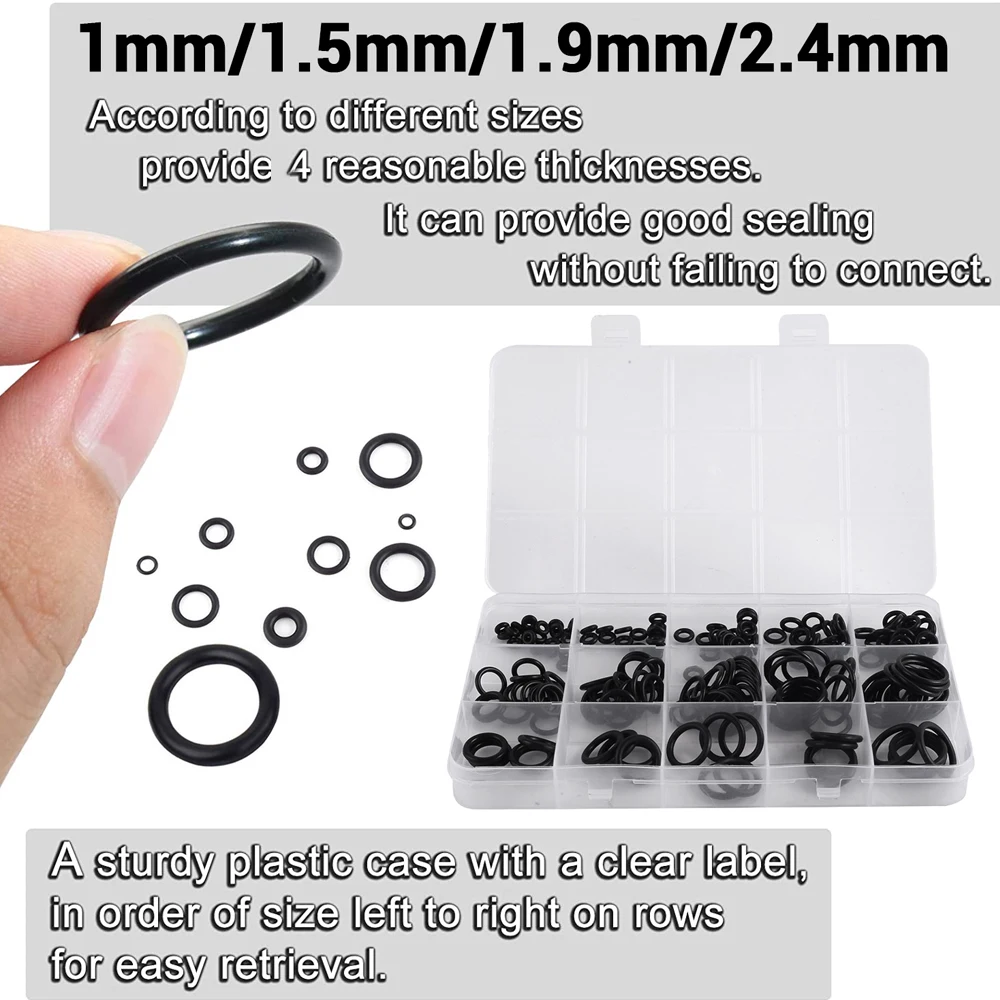 225 шт NBR уплотнительное кольцо набор колец набор маслостойких нитриловых резиновых уплотнительных колец набор метрических для сантехники воздуха, топливного инжектора, кран OD 6 мм-28 мм