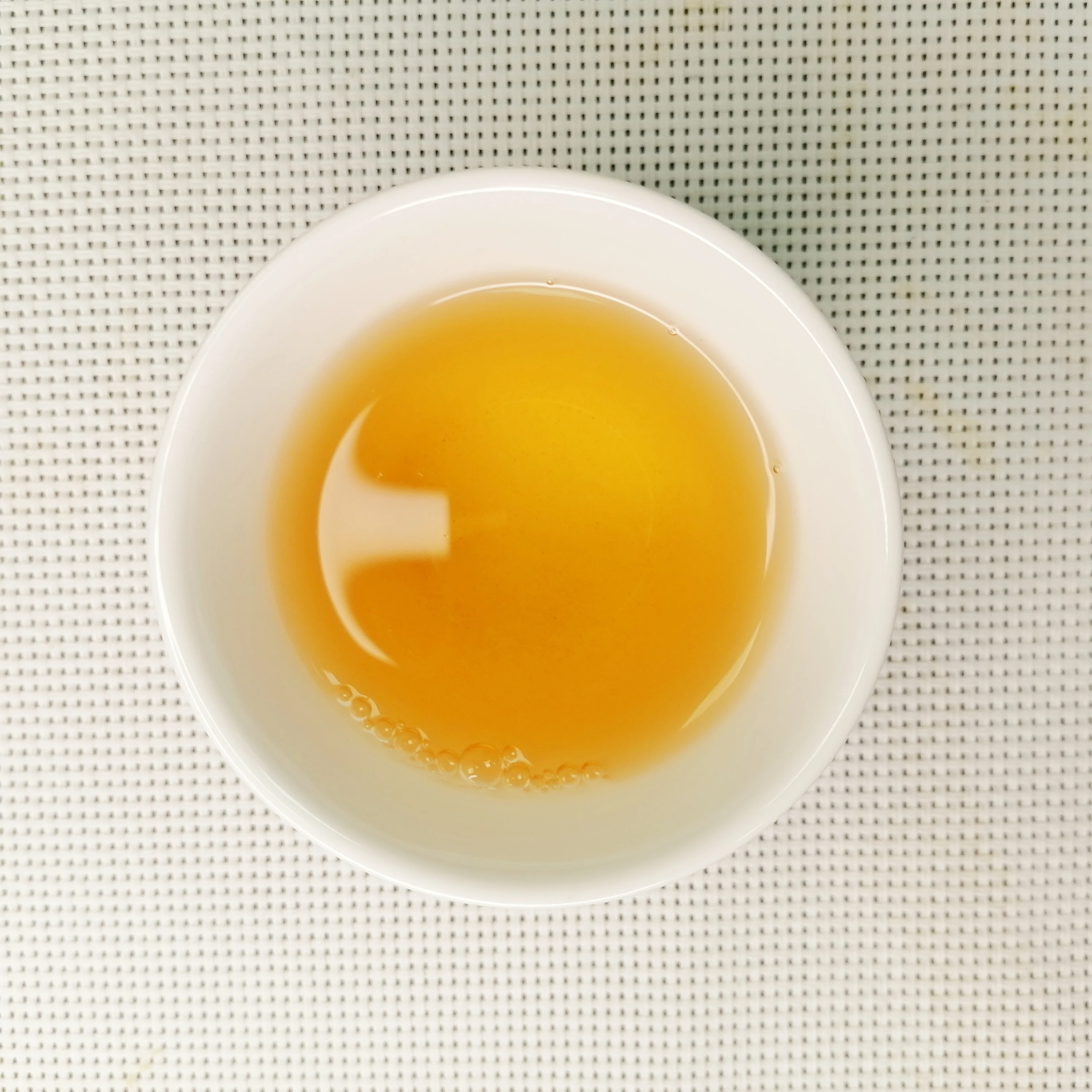 Цвет этого чая в сухом виде зависит прежде всего от состава компонентов порошка из трав, в котором обваливаются листья. В данном случае он ближе к жёлто-зелёному и по нему можно догадаться, что в состав добавлено немного большее количества толчёного женьшеня.