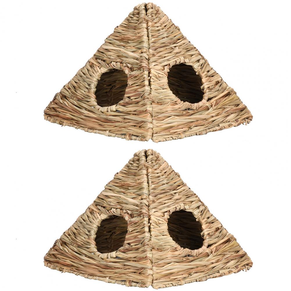 Дом для домашних животных изготовлен из соломенного материала, который является прочным и долговечным.