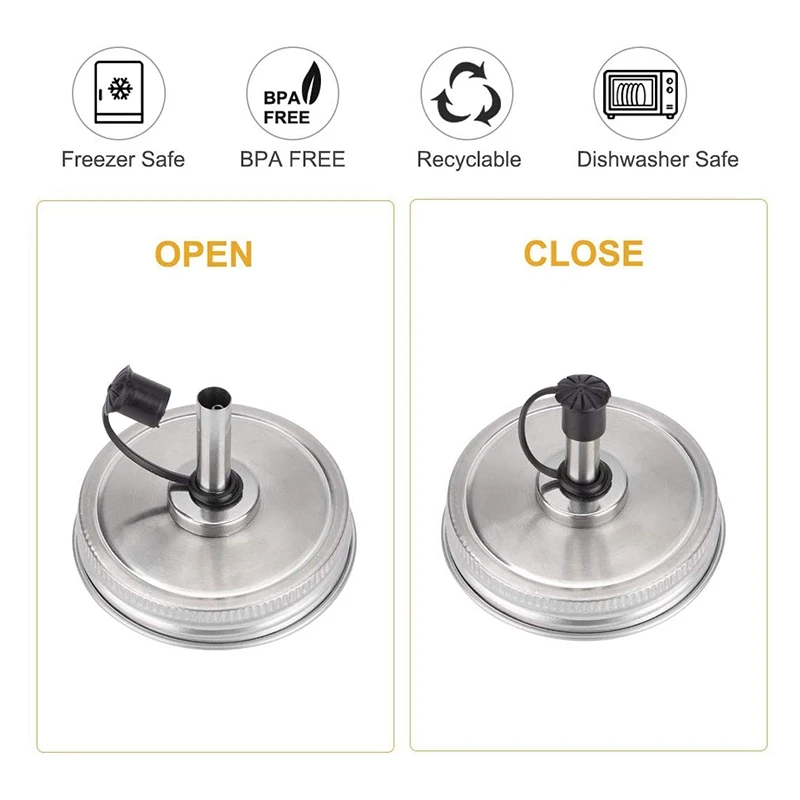 Безопасность для посудомоечной машины и морозильной камеры: В отличие от пластиковых и других металлических крышек, наши крышки из нержавеющей стали устойчивы к ржавчине и долговечны, могут быть многоразовые несколько раз, безопасны для посудомоечной машины, может выдерживать экстремальные температуры в посудомоечной машине или морозильной камере