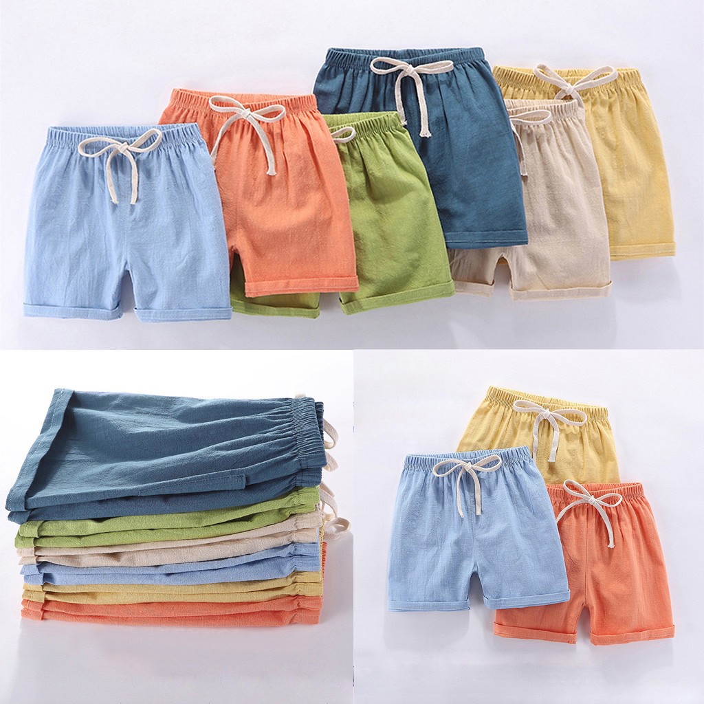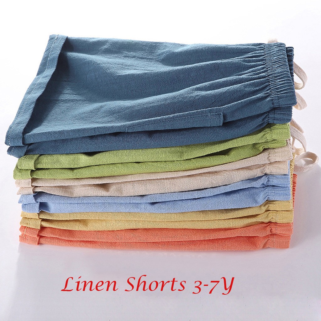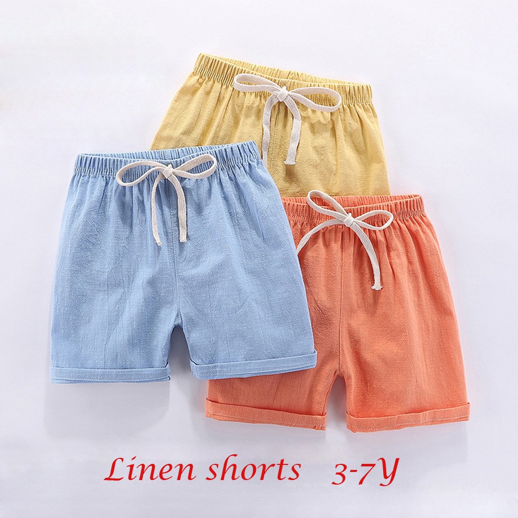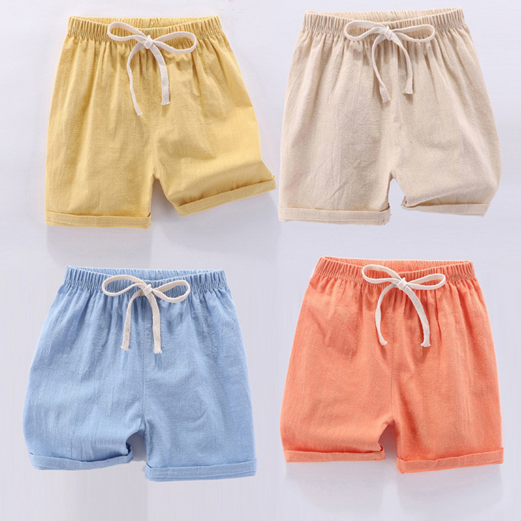 Летние Детские льняные повседневные шорты для мальчиков и девочек; Штаны с эластичной резинкой на талии; Одежда
