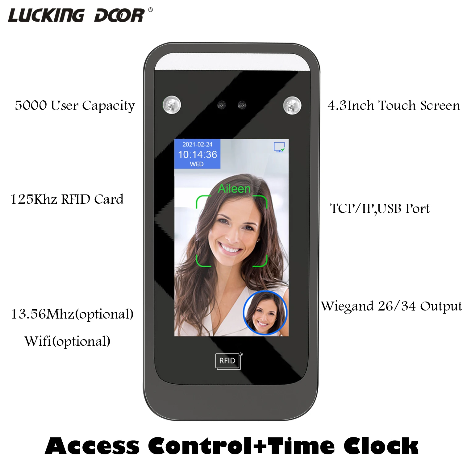 4,3 дюймов динамический лицевой доступ Управление Фингерпринта ИК распознавания лиц 125 кГц RFID клавишная панель TCP/IP/USB