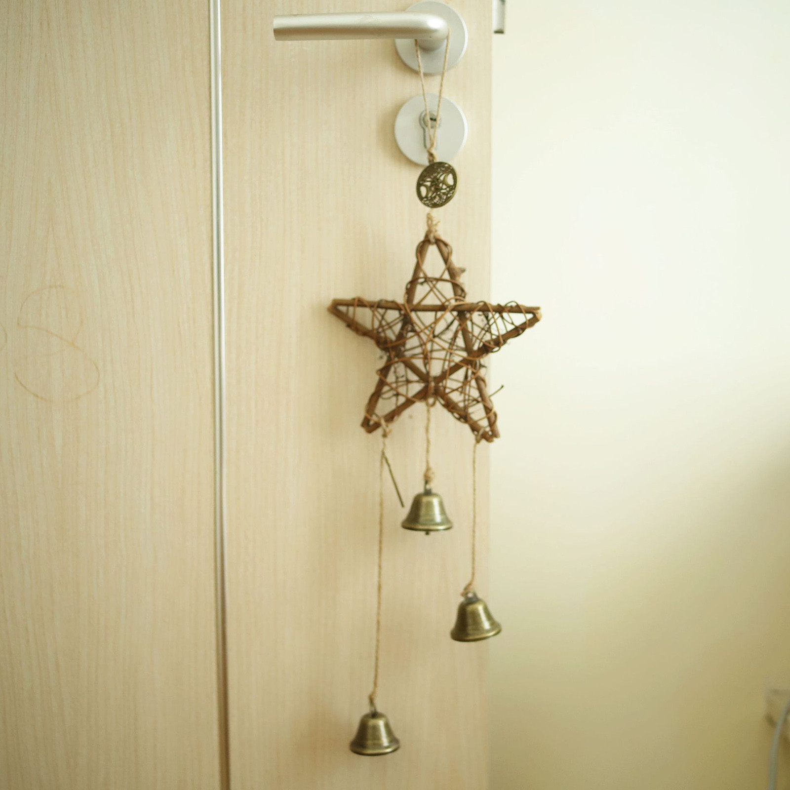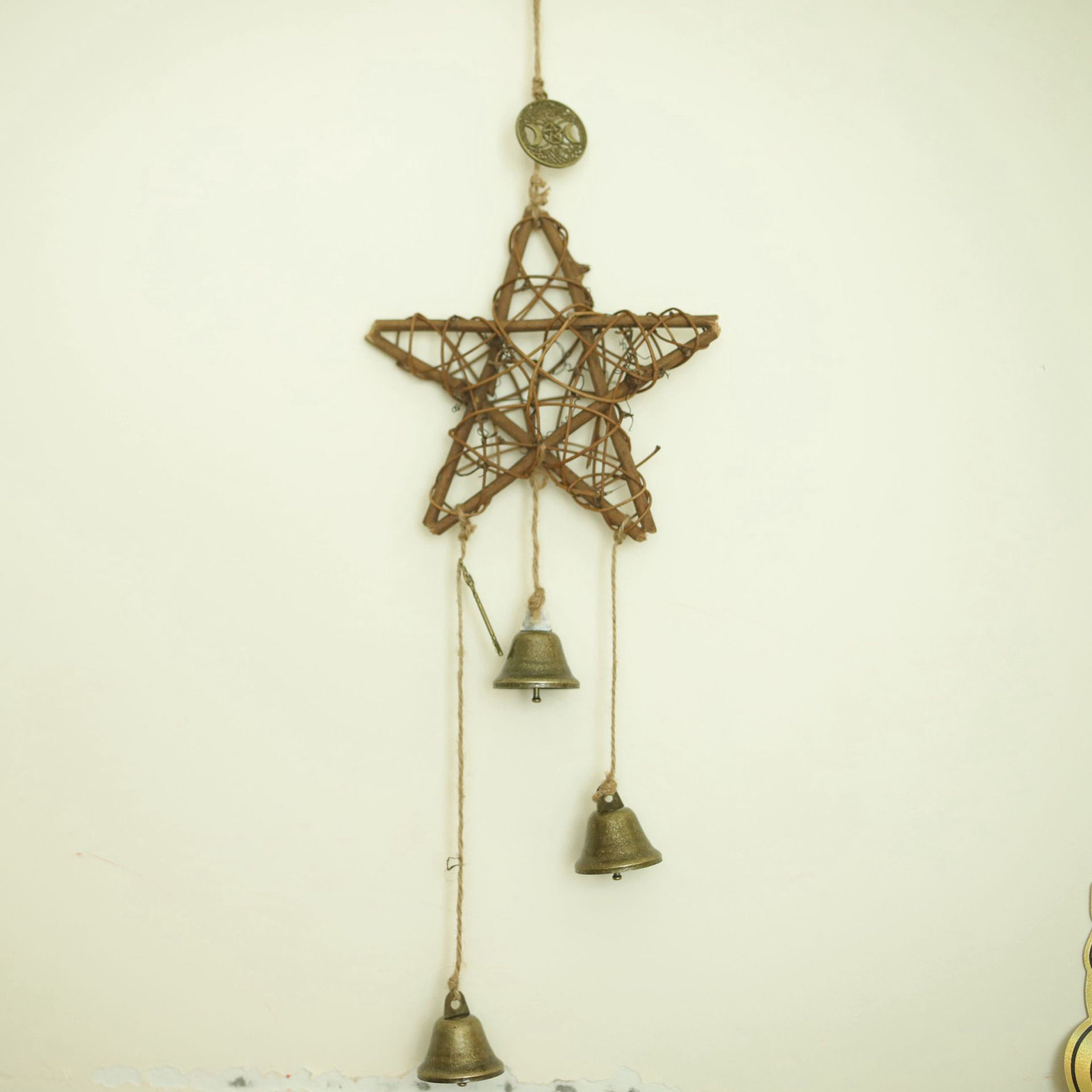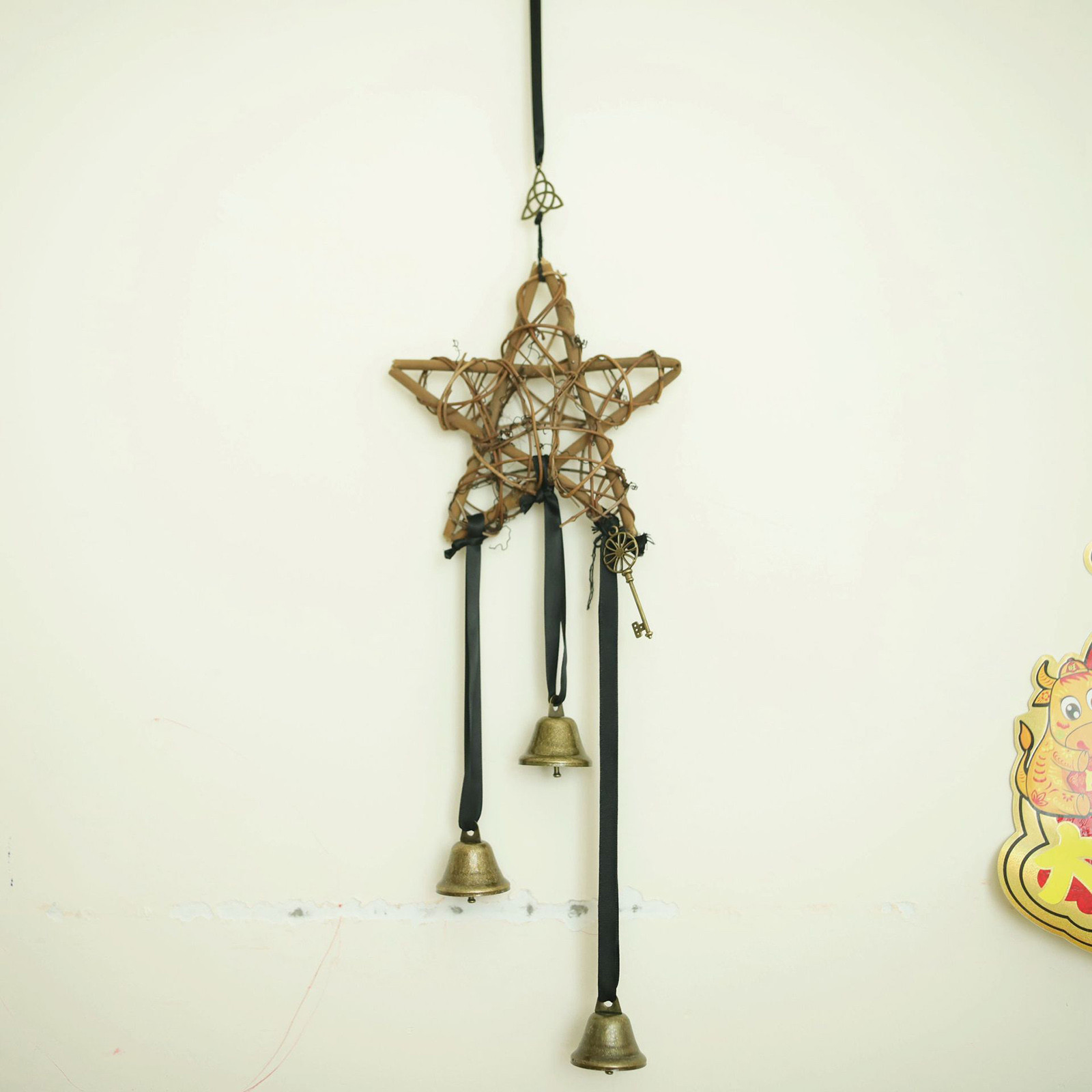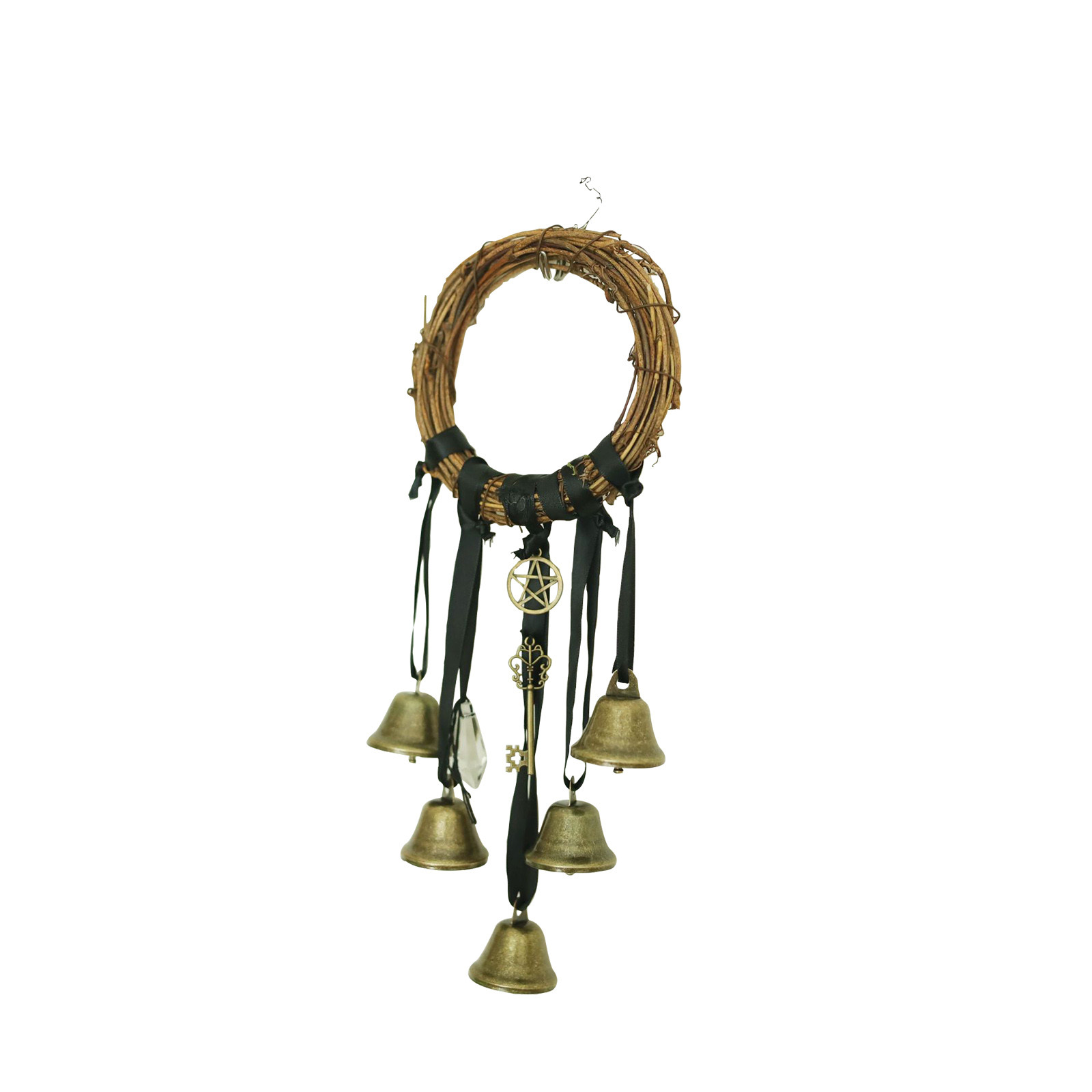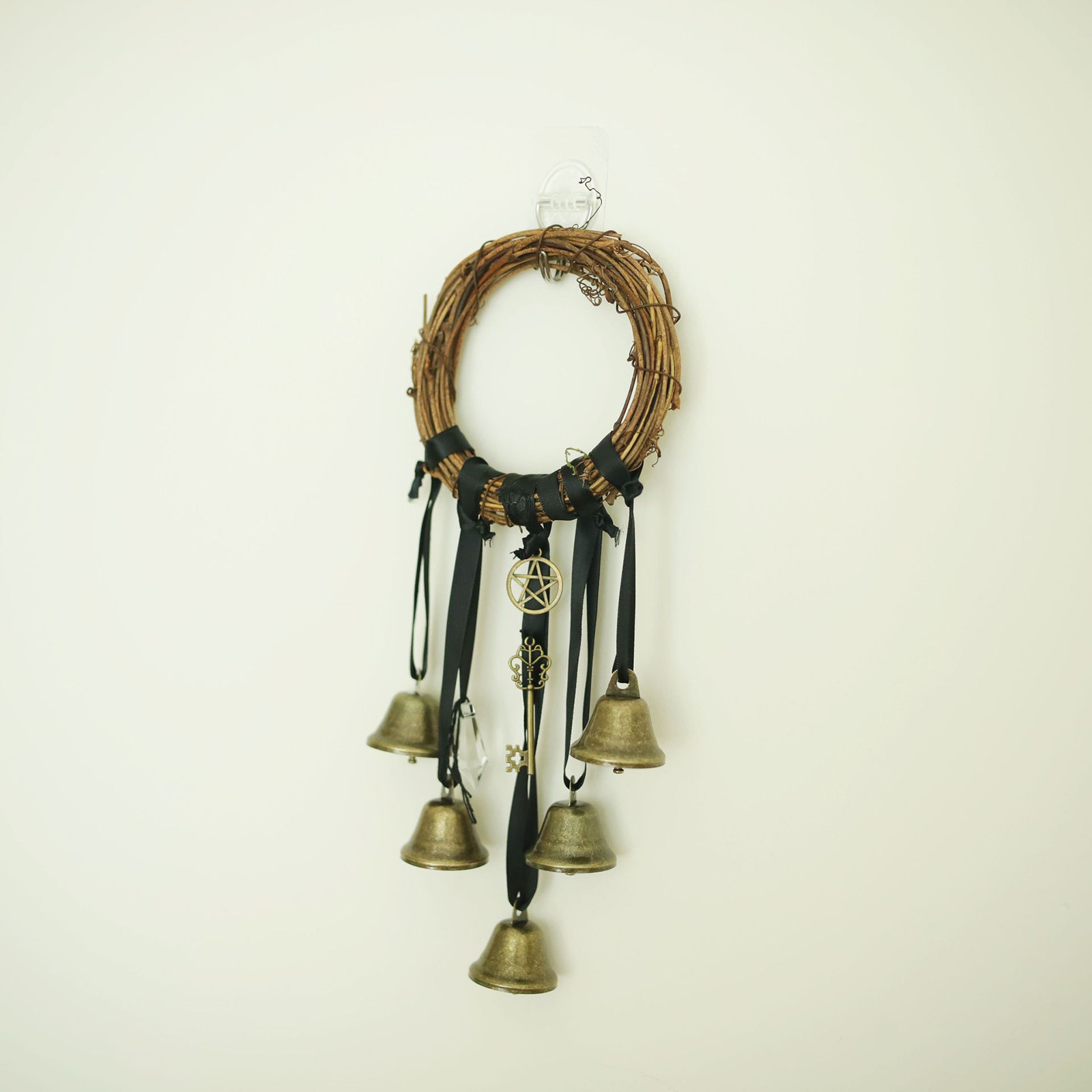 В этом прекрасном наборе дверных колокольчиков ведьмы ручной работы есть три колокола, подвеска с пентаграммой. Ключ-это защитный Шарм для вашего дома и всех людей, которые там живут.