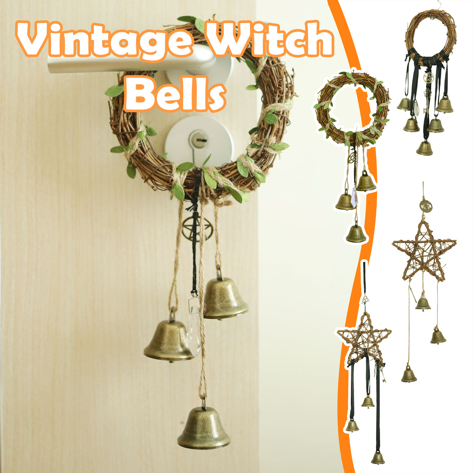 Колокольчики ведьмы, очарование для защиты дверей, декор Wicca, защита ведьм, алтарный декор, принадлежности для волшебных колдунов, дверные колокольчики.