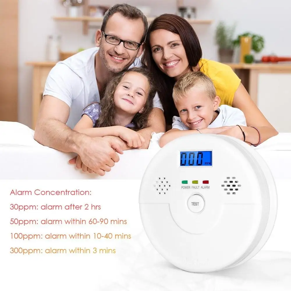 Детектор угарного газа 5 лет датчик жизни со датчик тревоги светодиодный индикатор питания батареи пожарная сигнализация с человеческим голосовым дисплеем