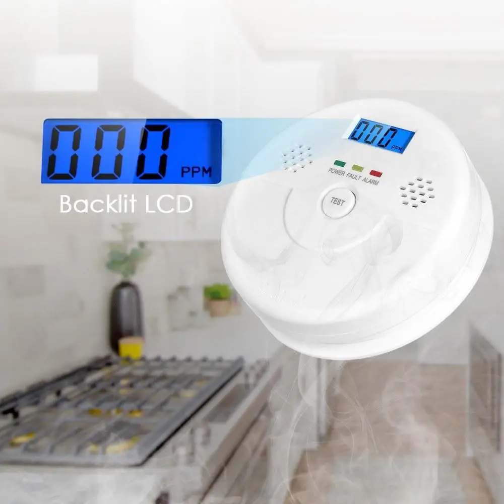 2 в 1 ЖК-дисплей детектор окиси углерода и газа на батарейках токсичный газ СО сигнализацией с светодиодный светильник мигающий Предупреждение
