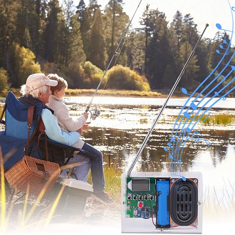 [Функции и особенности]: ЖК-дисплей более интуитивно понятный и точный. Радиомодуль с динамиком 5 Вт 8 Ом, а также с разъемом для наушников. Он поддерживает функцию автоматического поиска радиостанции и радиостанции памяти. Регулируемый диапазон приема: выключить кампус радио 87-108 МГц; Включить кампус радио 76-108 МГц. Небольшой размер и питание от 1 аккумулятора 18750 (не входит в комплект), который может работать непрерывно до 8 часов и поддерживает зарядку, подходит для использования на открытом воздухе, например, для рыбалки, прогулок и пикника.