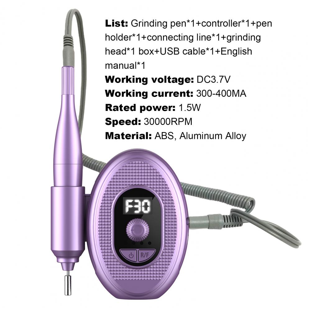 Машинка для полировки ногтей перезаряжаемая быстрая скорость вращения USB кабель Портативный электрический сверлильный станок Инструменты для маникюра для салона