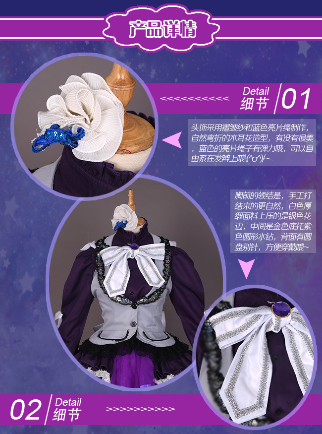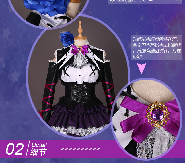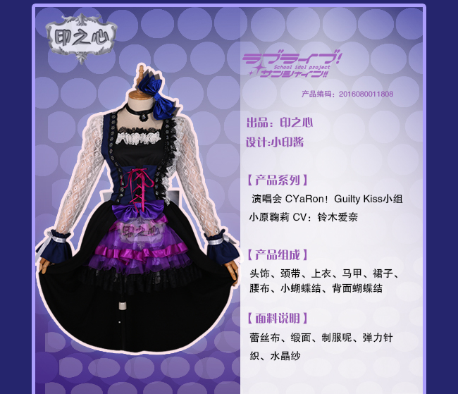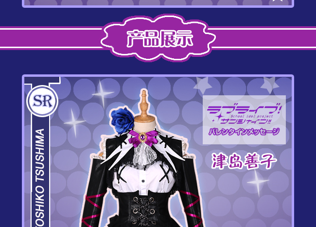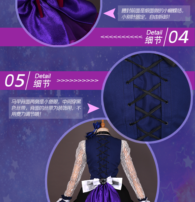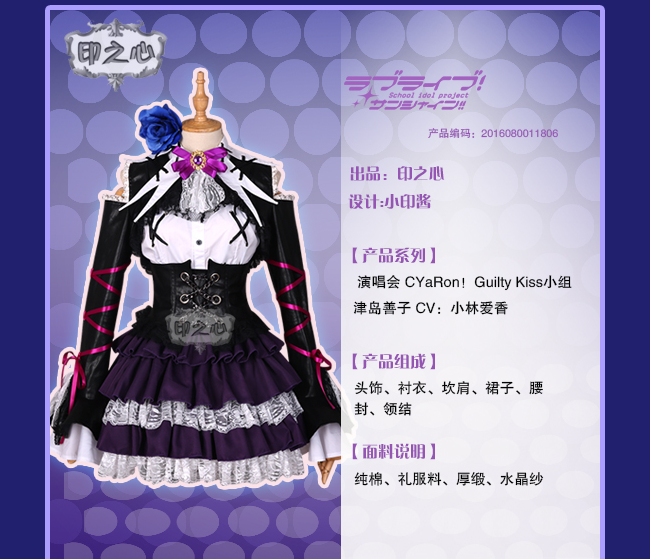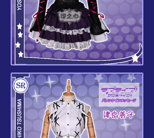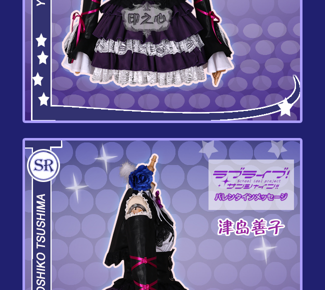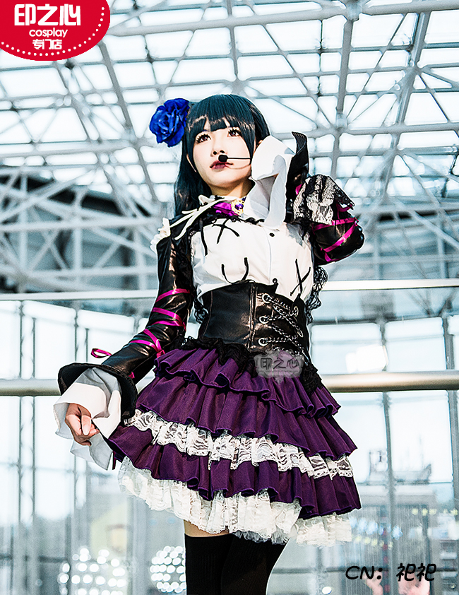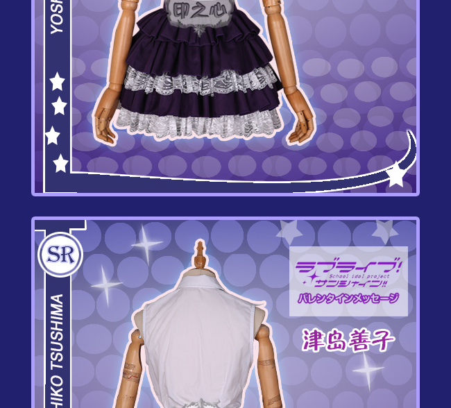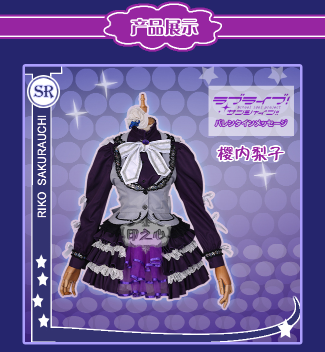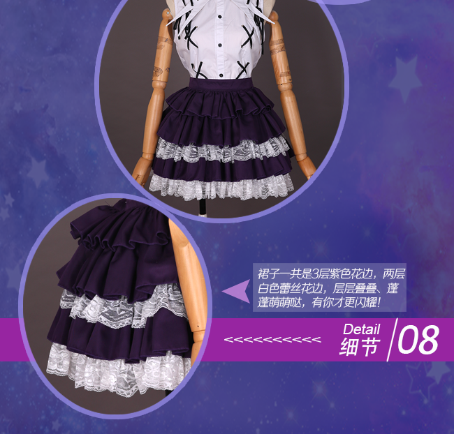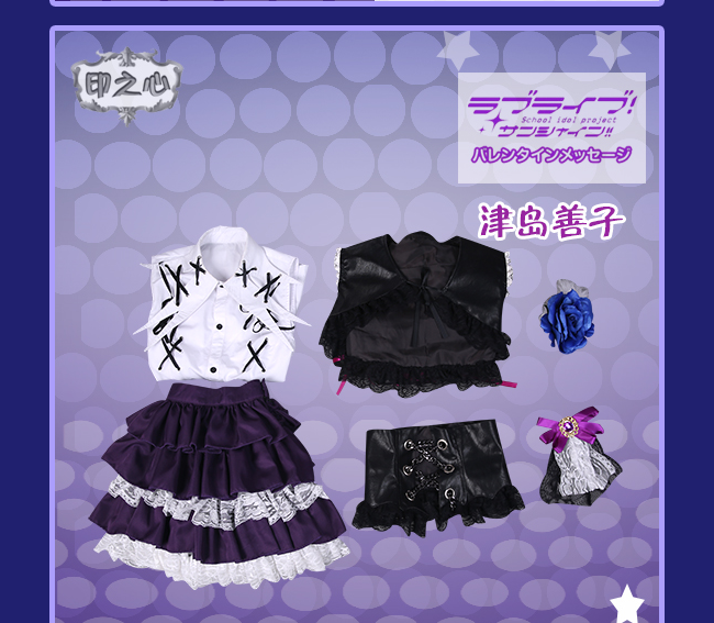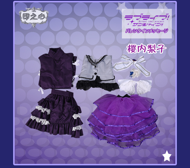 (1)Sakurauchi Riko: Топ + платье + нижняя юбка + жилет + головной убор + галстук-бабочка + бант сзади
