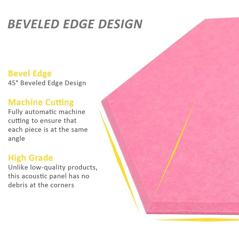 [Stylish Appearance]: This unique hexagonal acoustic panels adopts beveled edge design,which can not only be used to absorb unnecessary echo,the special shape and beautiful colors also play an important part in decorate your favorite space.