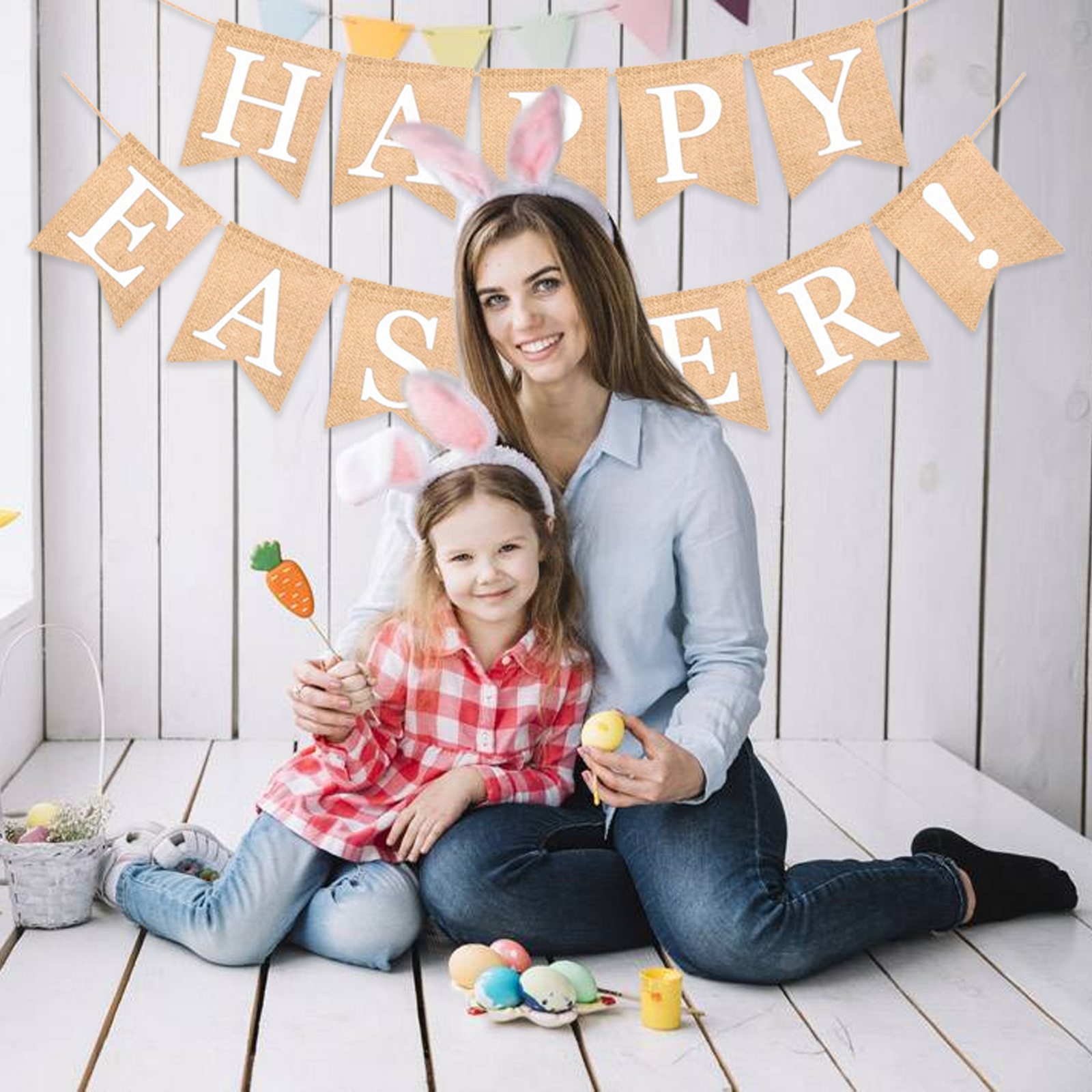 1. Посылка включает в себя: Пасхальные подвесные баннеры. Пасхальный декор баннеры размером 17 × 13 см для каждой буквы, пасхальный знак имеет веревки, которые можно повесить более легко.