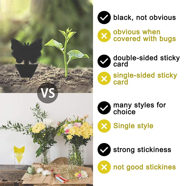 Безопасный и безвредный: крытые летучие щиты используют синий и клей для ловли вредителей, и изготовлены из дружественных материалов, без специфического запаха, безопасный и нетоксичный, и безвредный для людей и домашних животных.