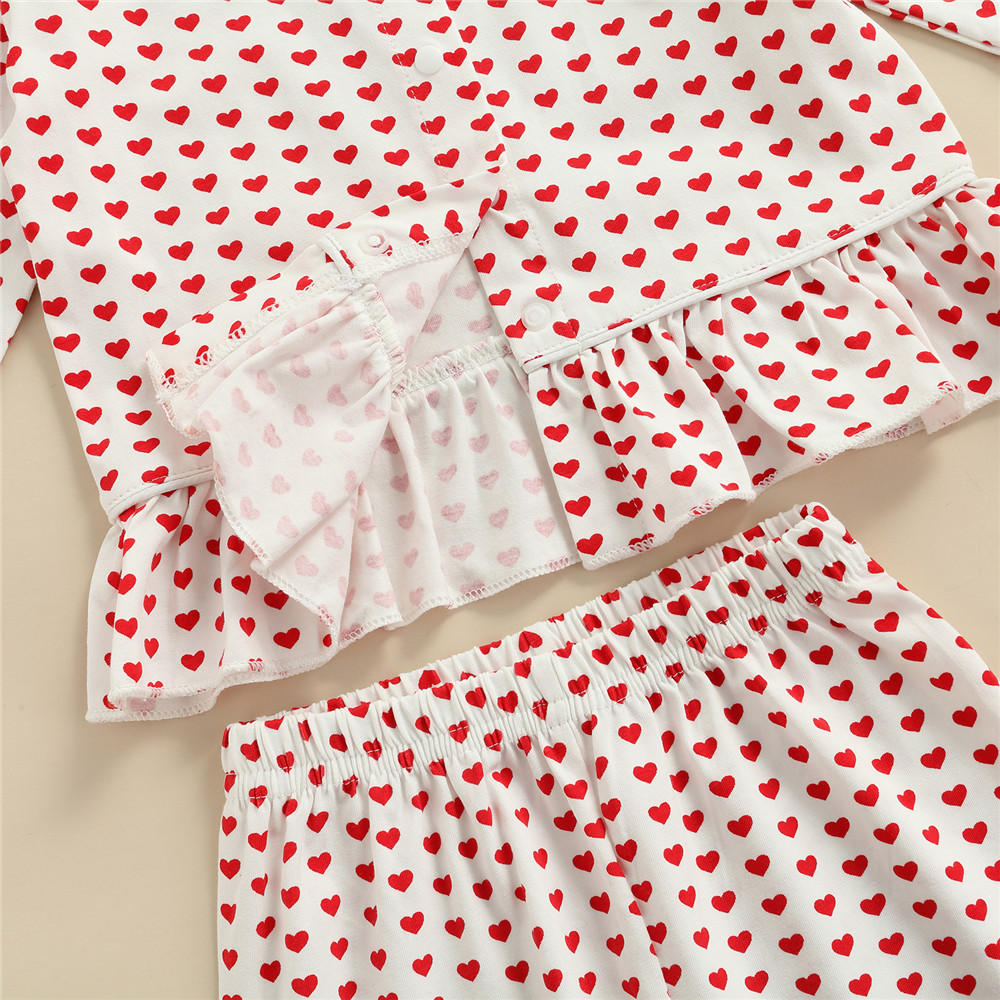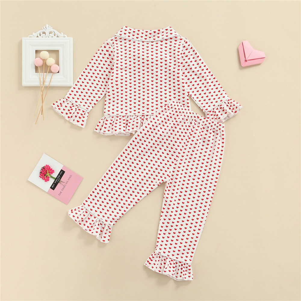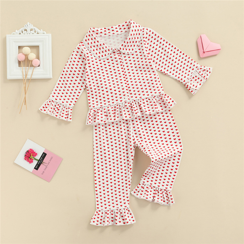 Одежда на День святого Валентина для маленьких девочек пижамный комплект с принтом в виде сердца, рубашка Топ и штаны детский праздничный костюм на возраст от 18 месяцев до 6 лет, одежда для сна, пижамы