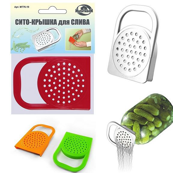 Крышка на банку для слива с ручкой пригодится в каждом доме. Ведь вы то сливаете рассол, то процеживаете зеленый горошек и кукурузу на салаты. Куда ни посмотри, а крышка с ситом не помешает на кухне!