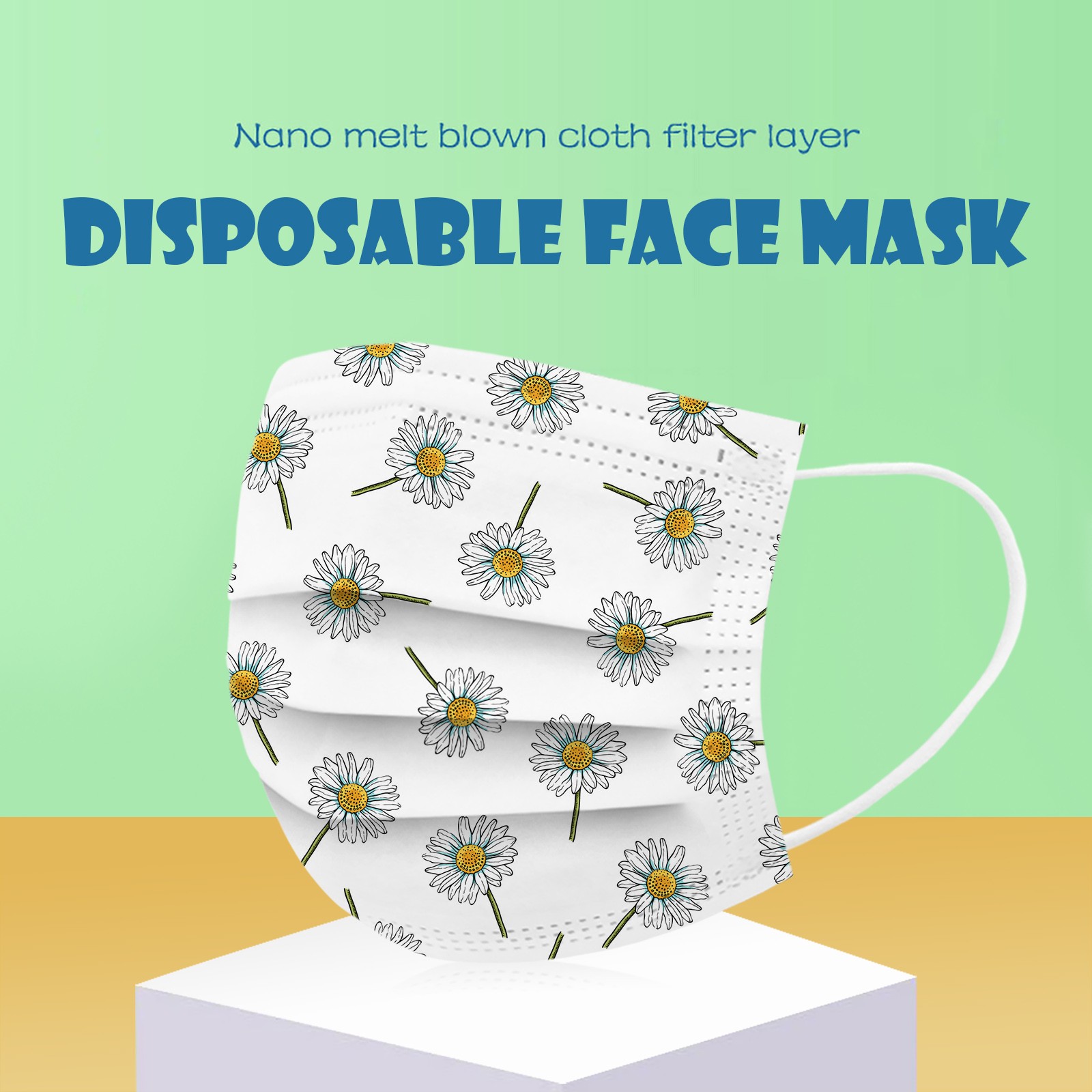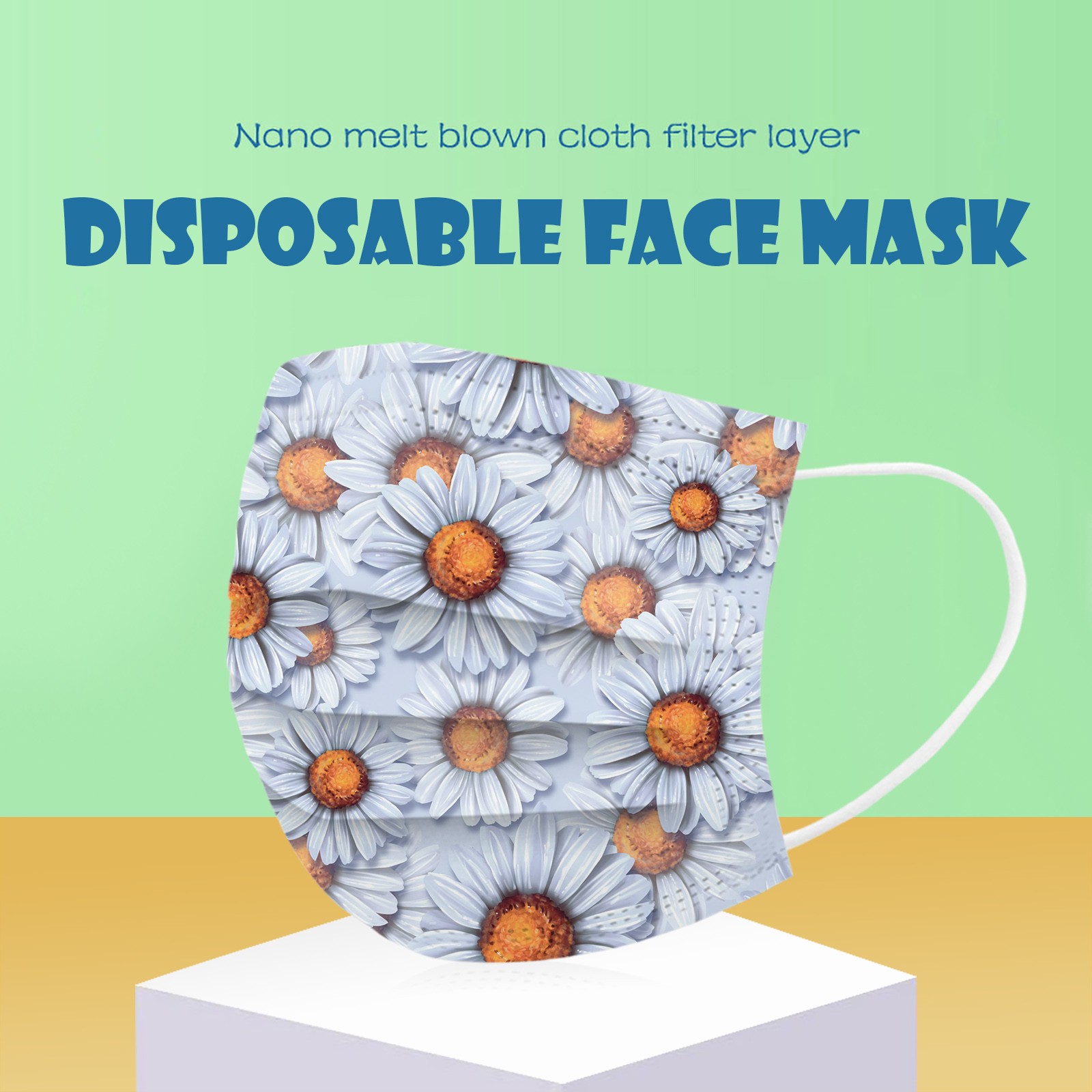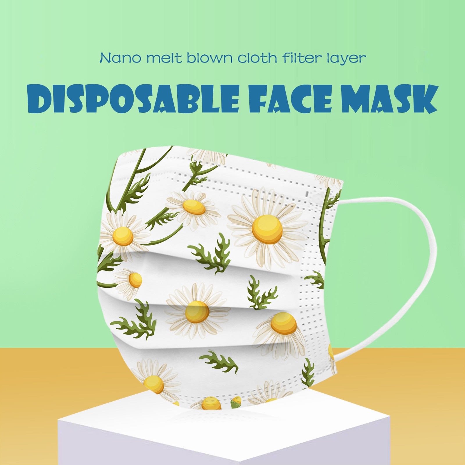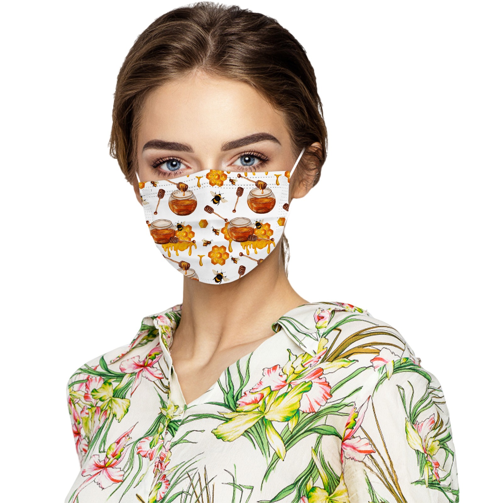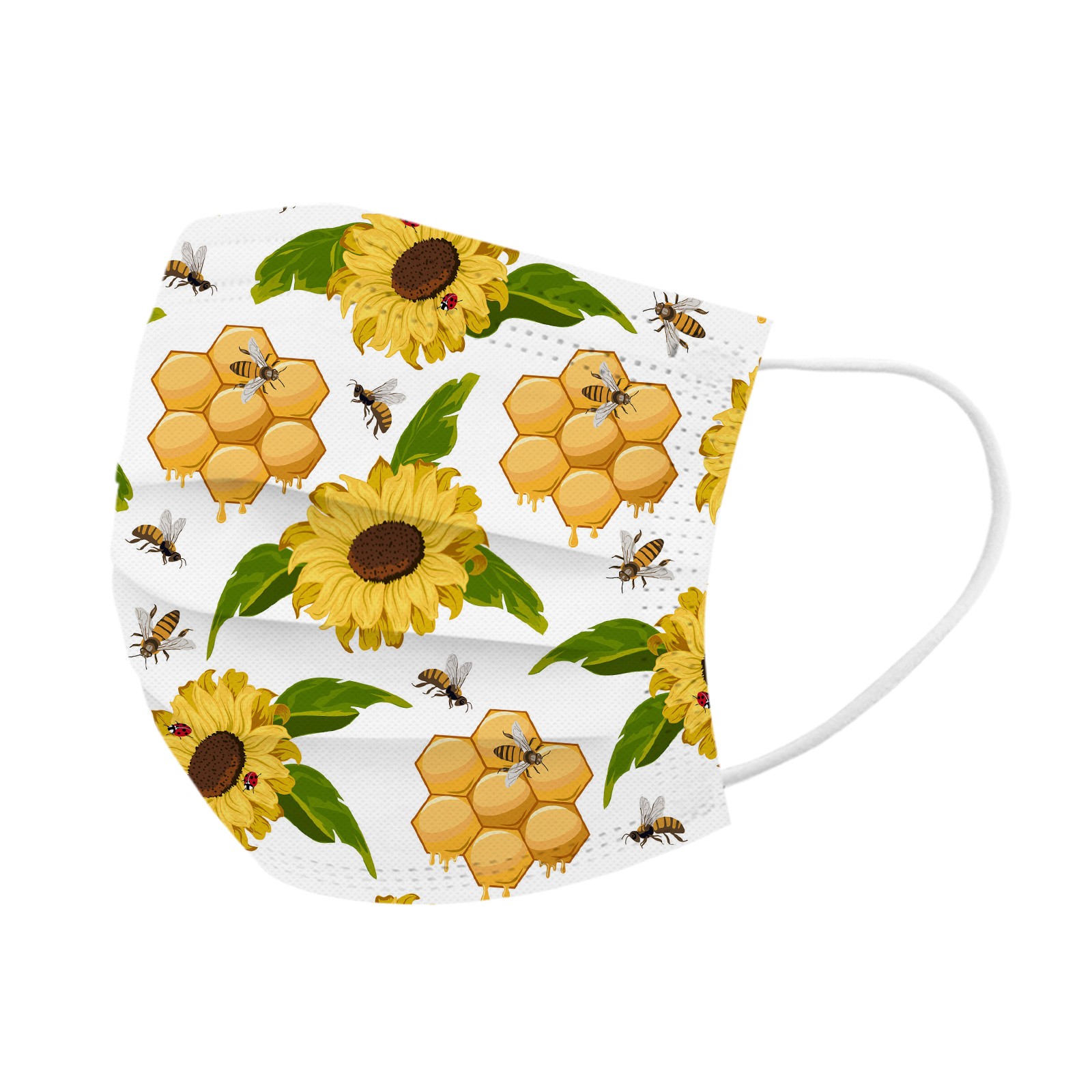 Маска одноразовая с пчелами и цветочным принтом 50 шт. |