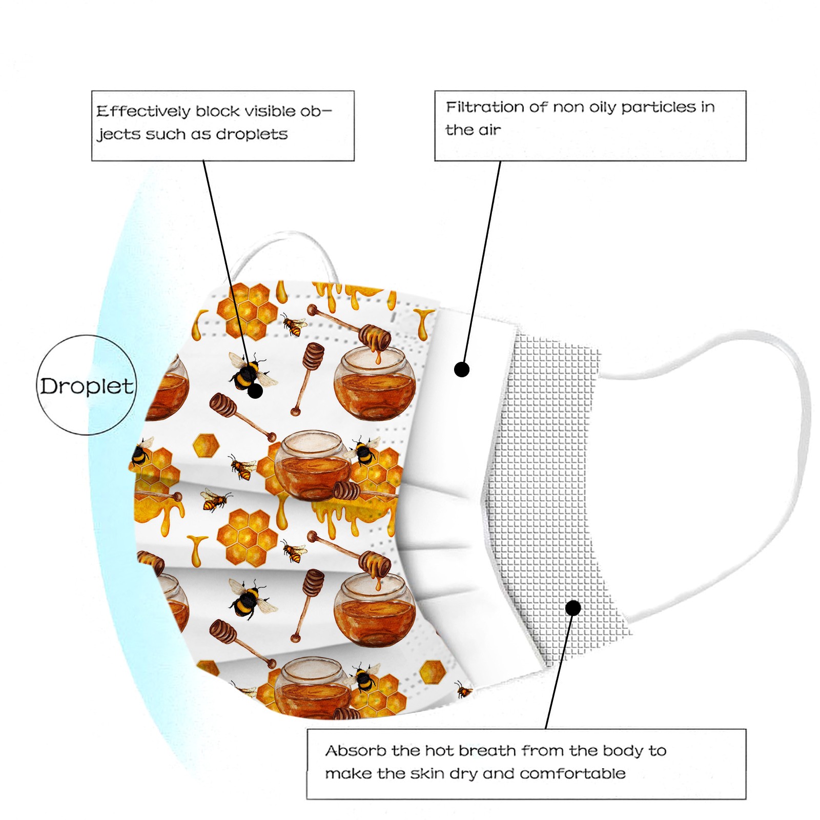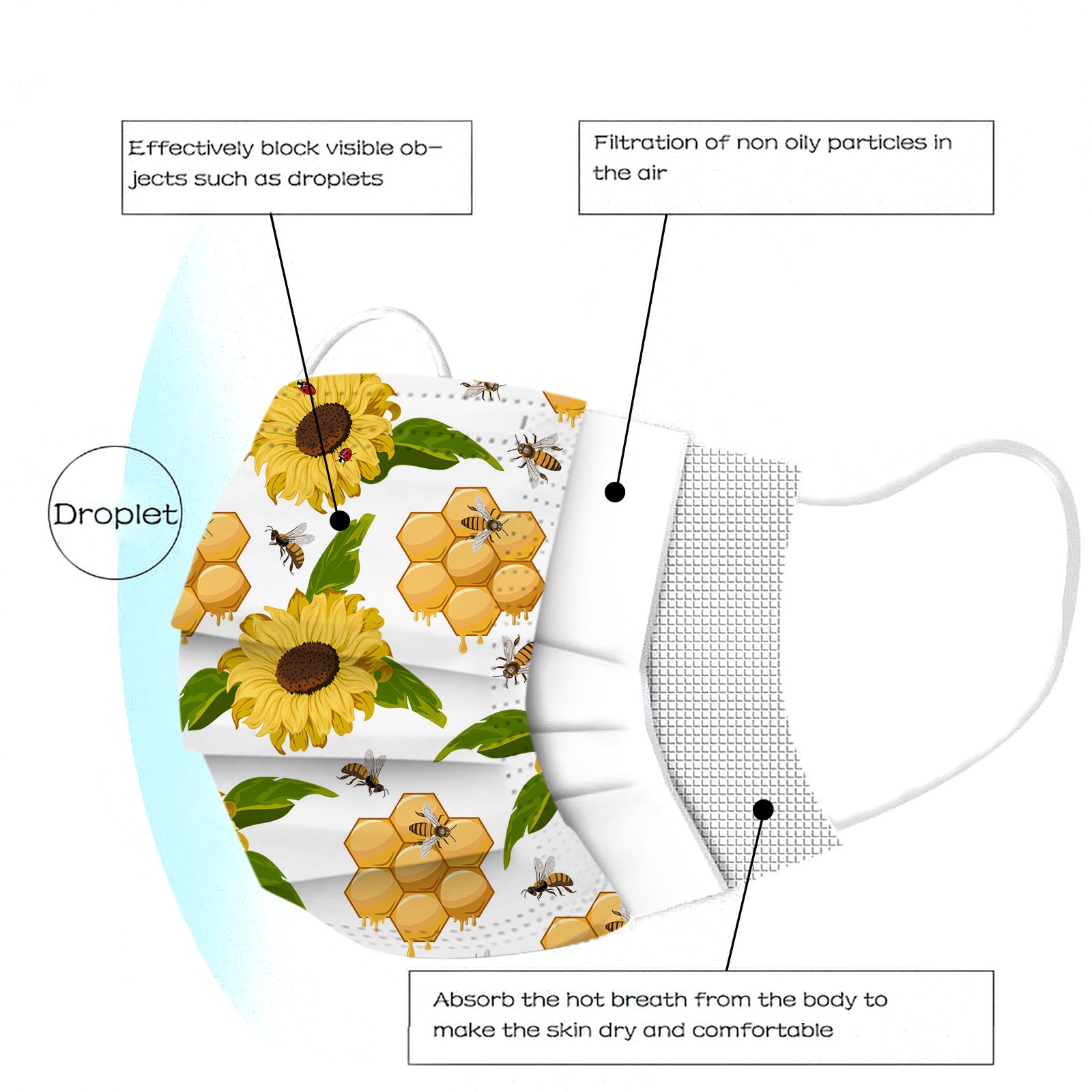 Взрослая пчелиная печать маска для защиты лица одноразовая маска для ушного крючка 50 шт