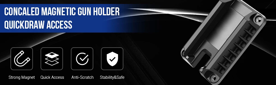 【Защита от царапин и легко монтируется в любом месте -- высококачественное покрытие магнитной кобуры помогает защитить Ваш пистолет. Наше магнитное крепление для пистолета может быть установлено в вашем автомобиле, грузовике, офисе, автомобиле, кассе, дверном проеме, прикроватной тумбочке, сейфе, столе и столе. Очень легко для маскировки.