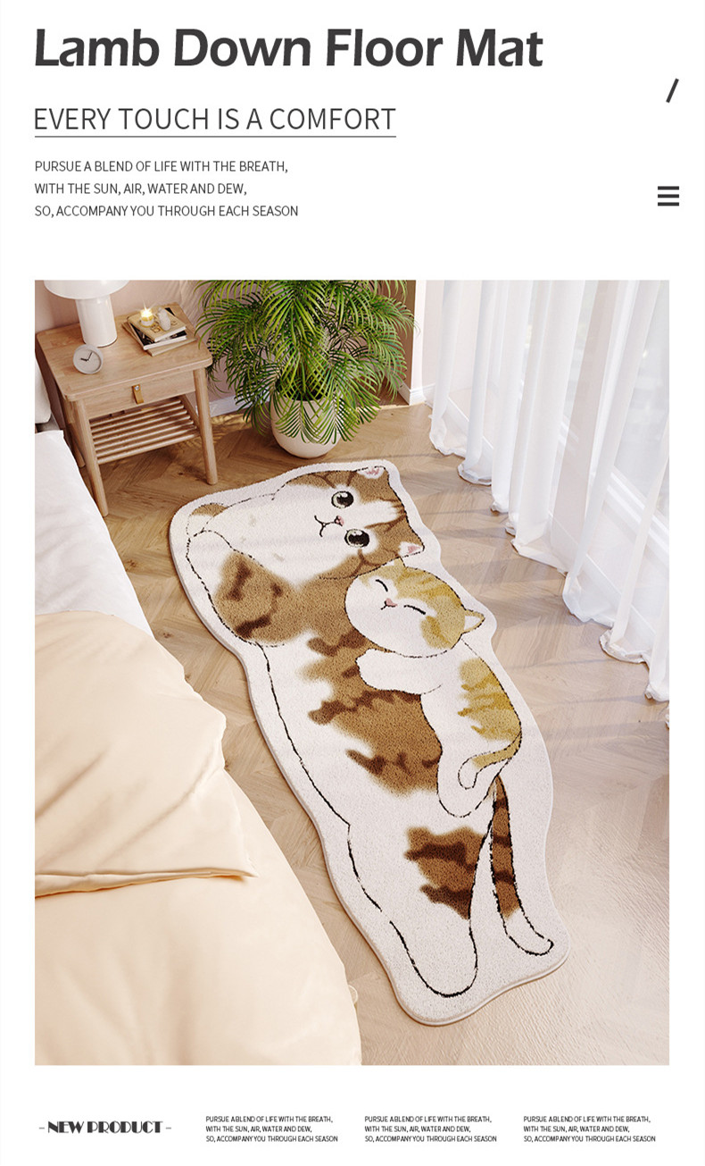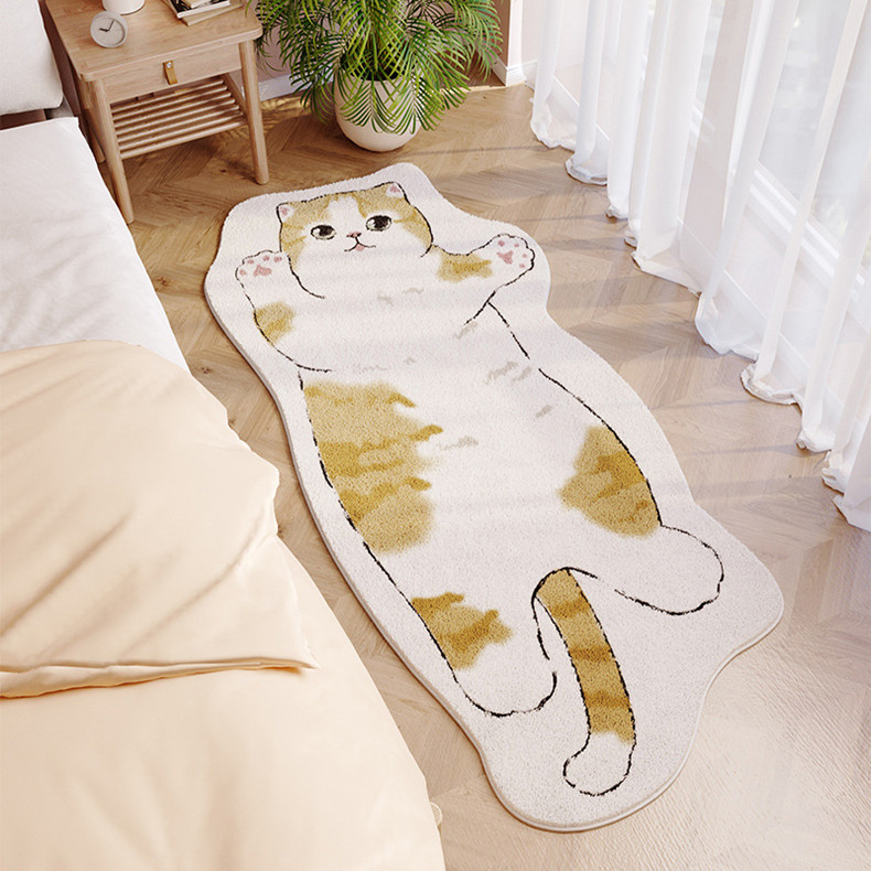 Ковер с рисунком кота из мультфильма, ковер для спальни для девочек, ковер из овечьей шерсти неправильной формы, длинный ковер рядом с кроватью, декор для детской комнаты, плюшевые ковры