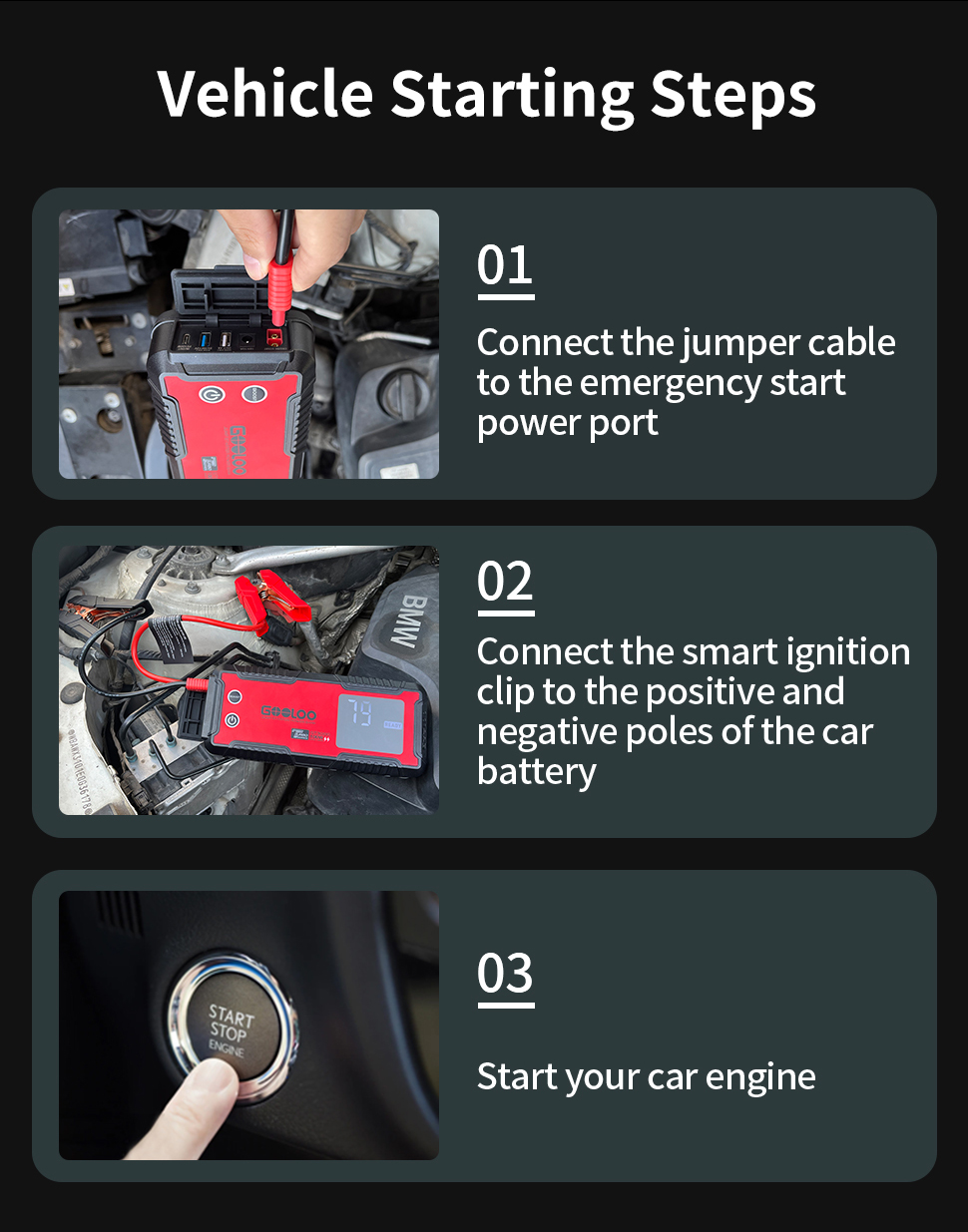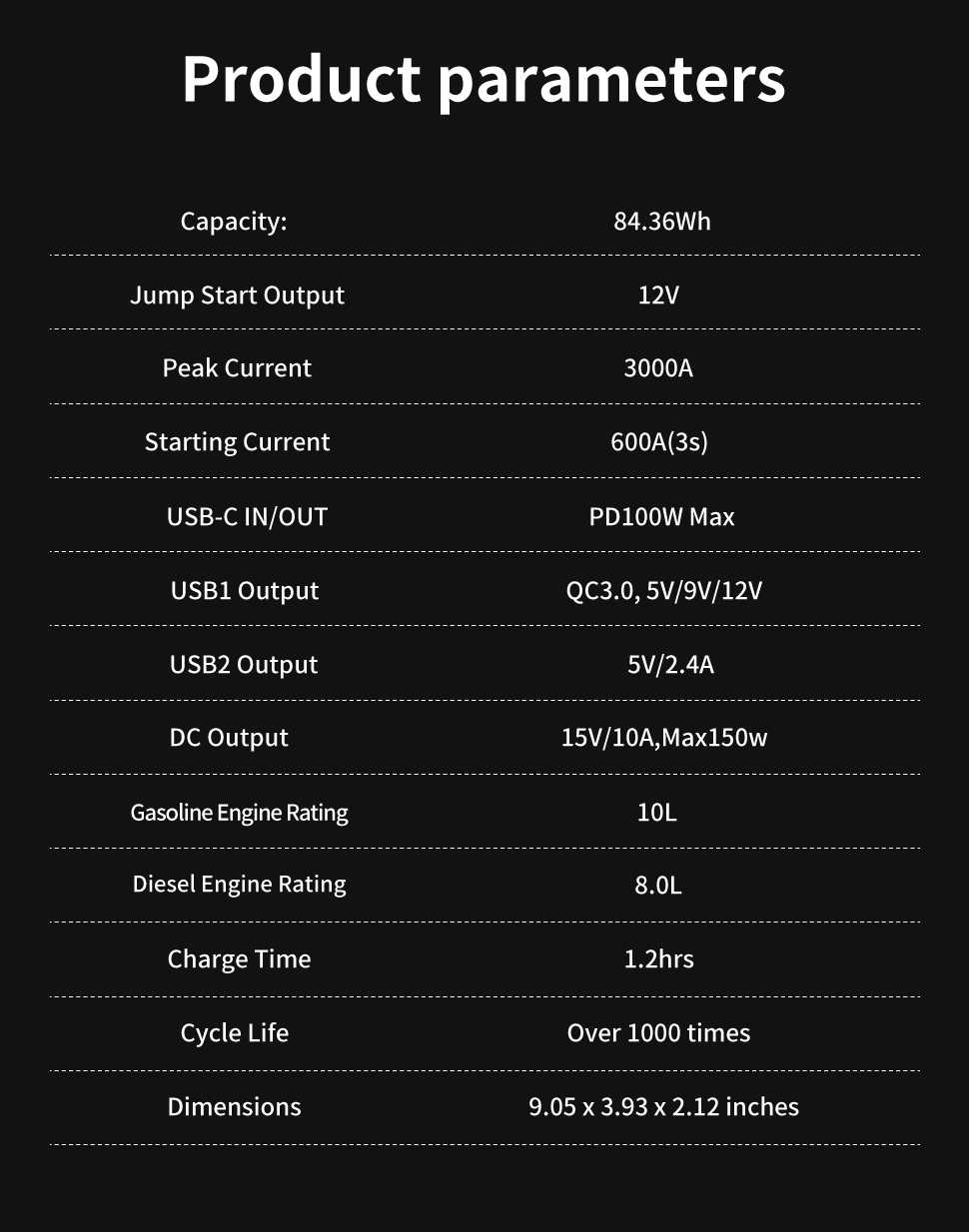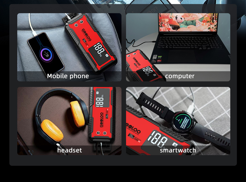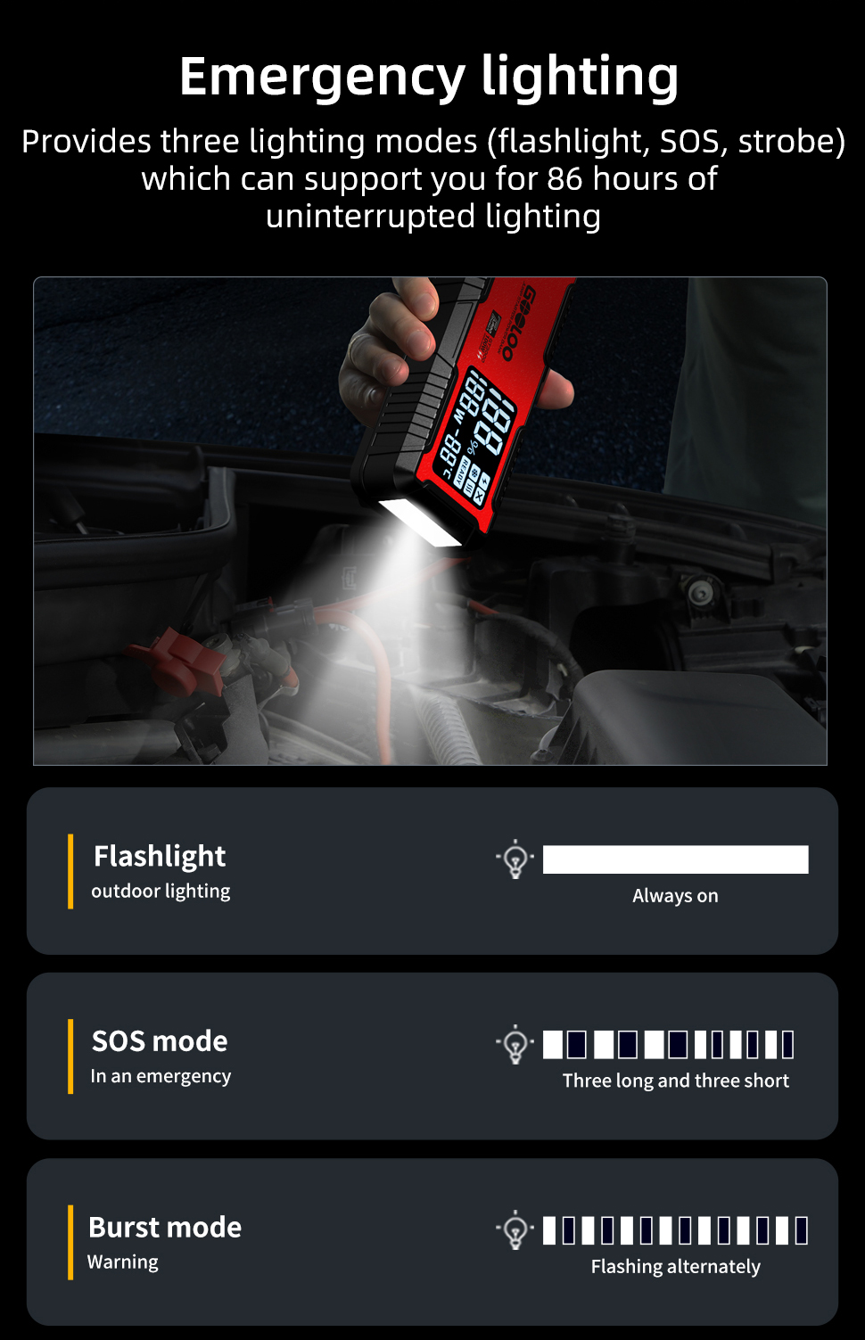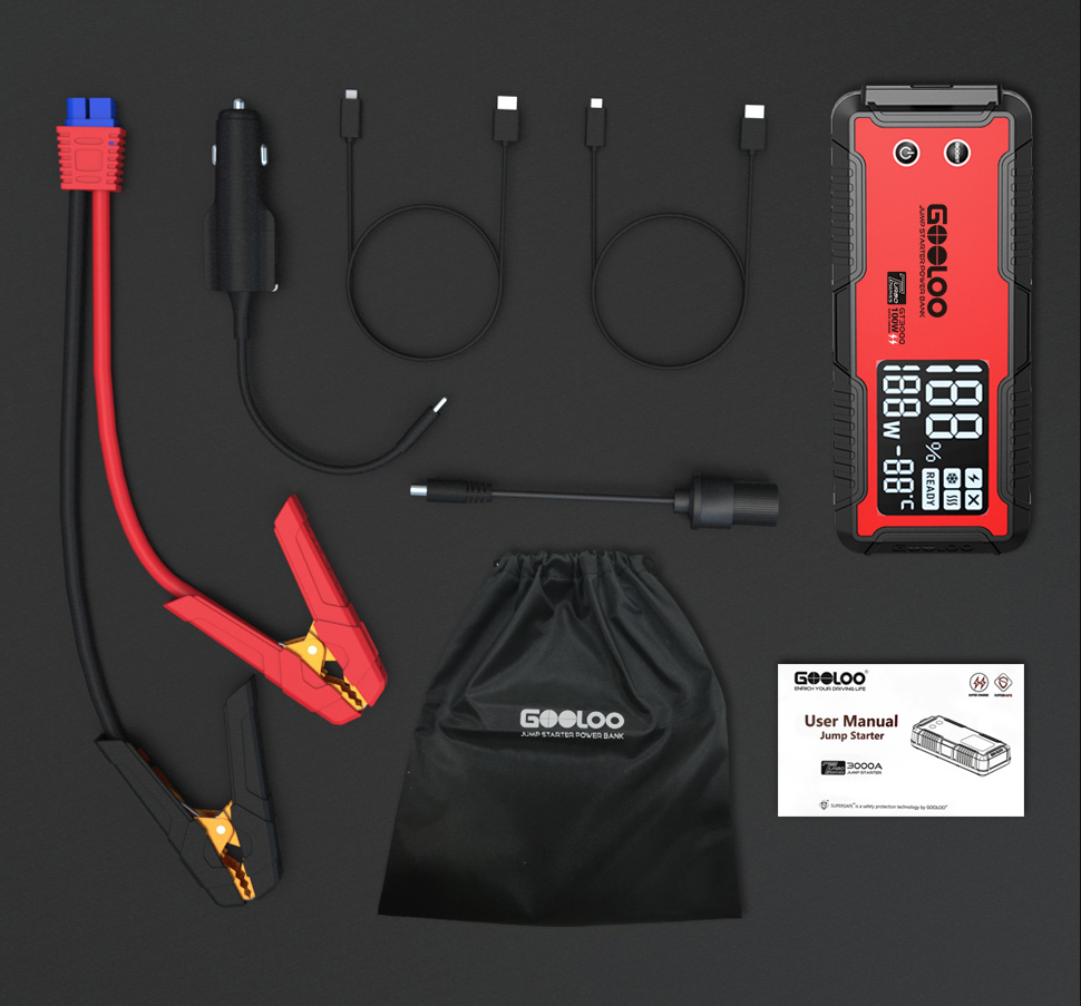 В GT3000 аккумулятор стартовый набор имеет пик пусковая мощность 3000 ампер и аккумулятором емкостью до 22800 мА/ч, которые можно смело начинать запасы 12 вольт автомобильный аккумулятор за считанные секунды.