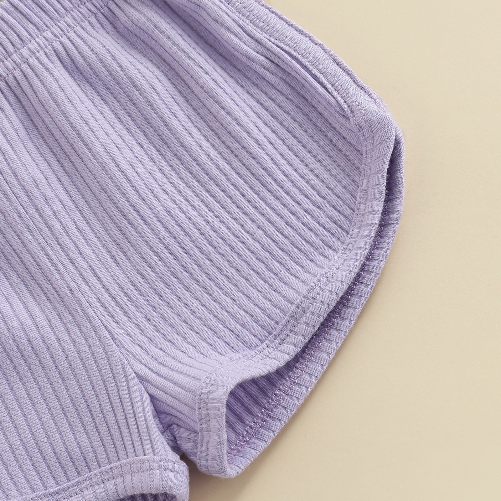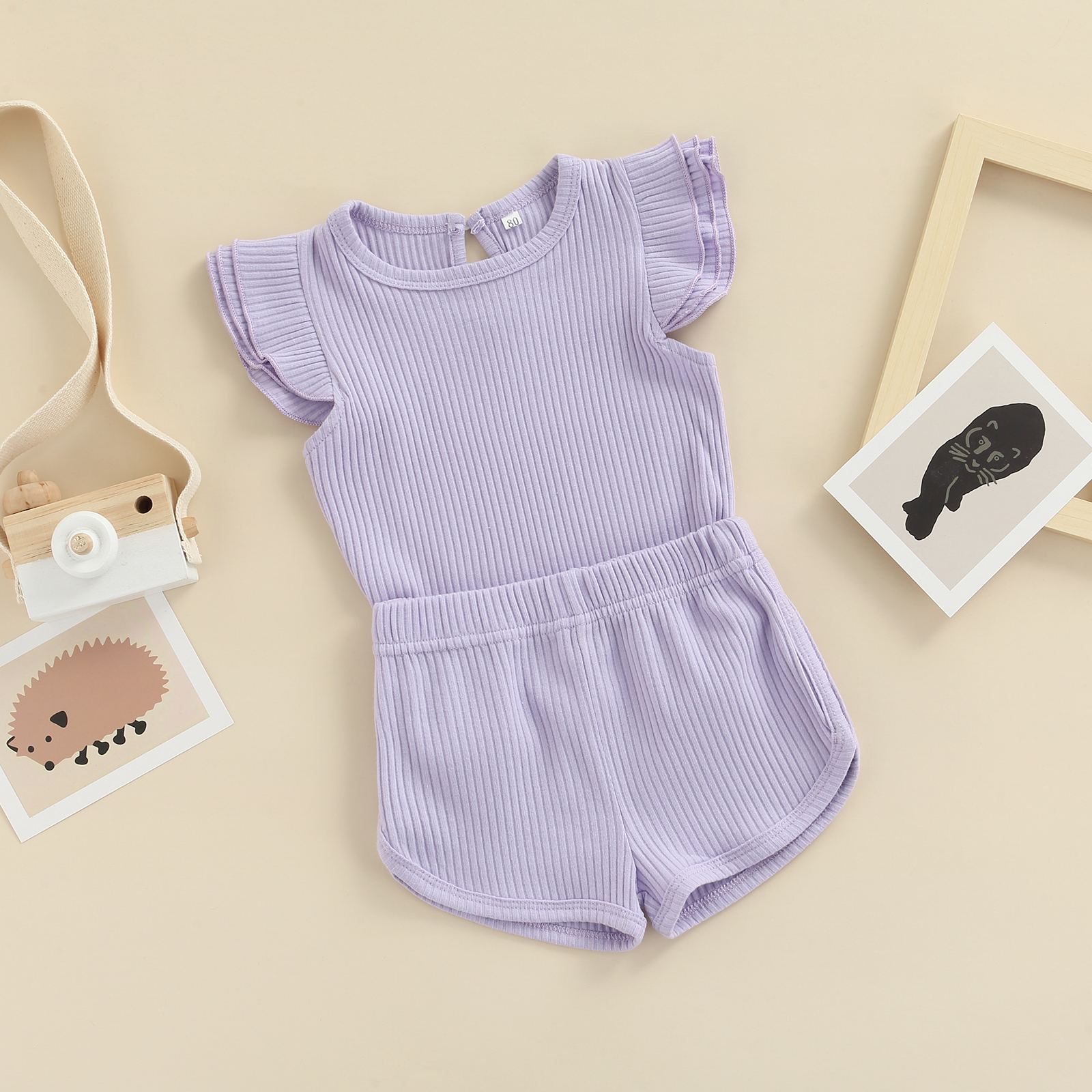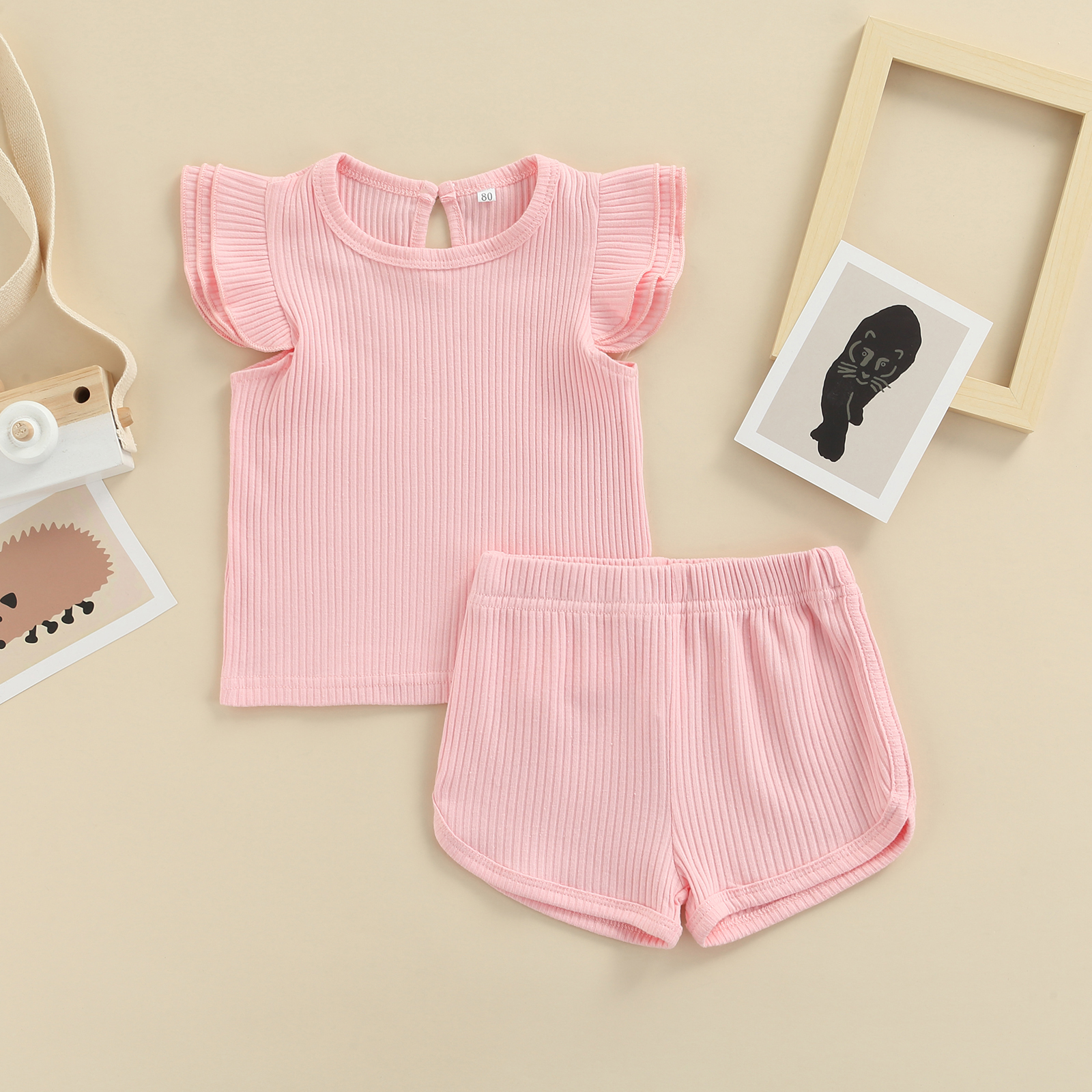 Комплект с шортами для малышей, однотонный трикотажный топ с круглым вырезом и рукавами-крылышками + эластичные шорты