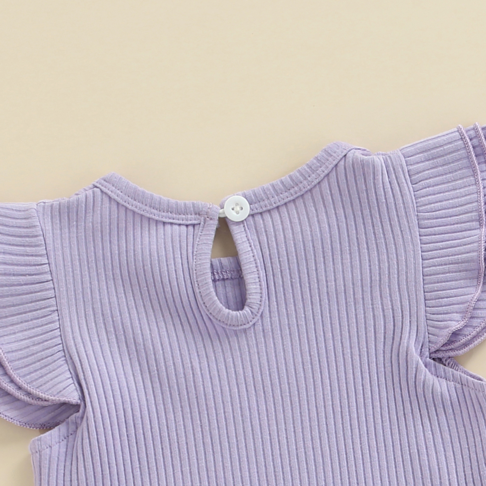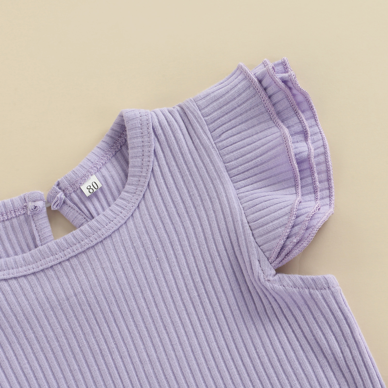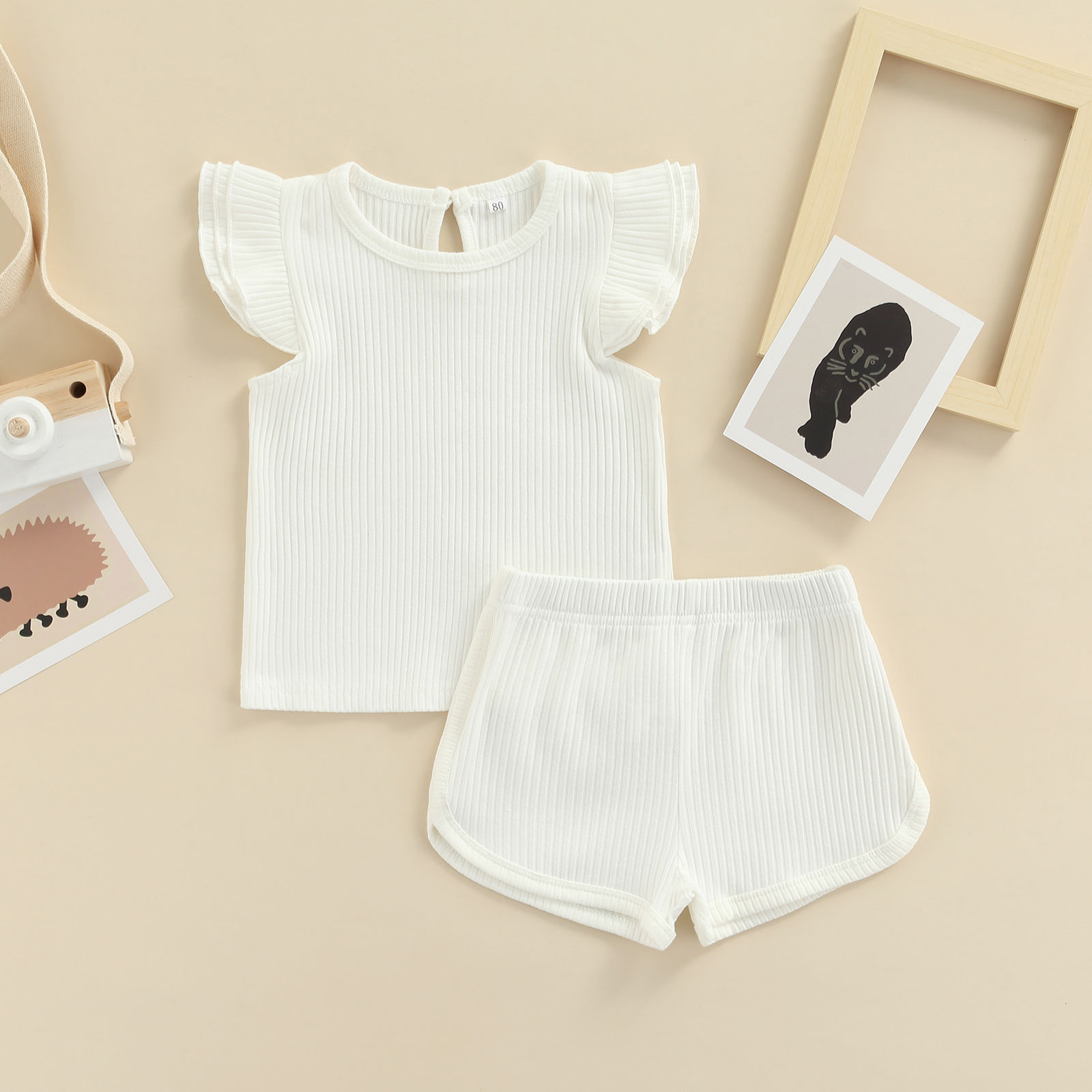 Комплект с шортами для малышей, однотонный трикотажный топ с круглым вырезом и рукавами-крылышками + эластичные шорты