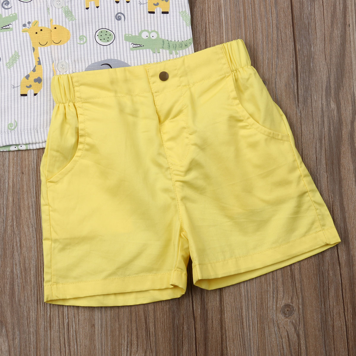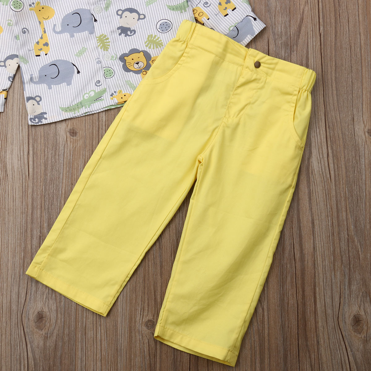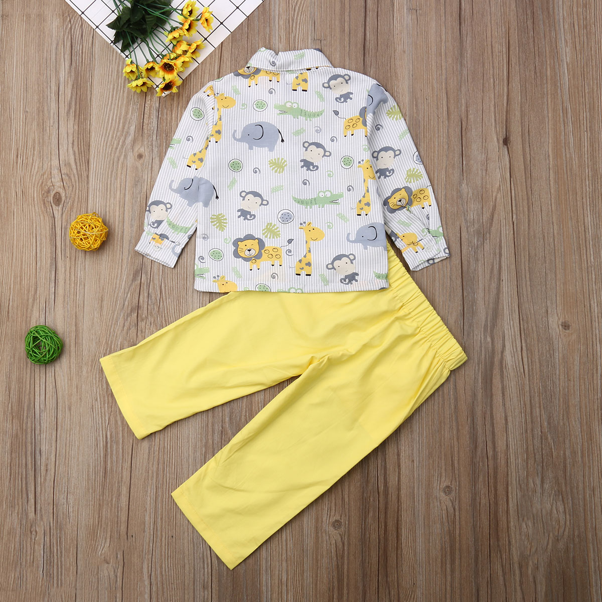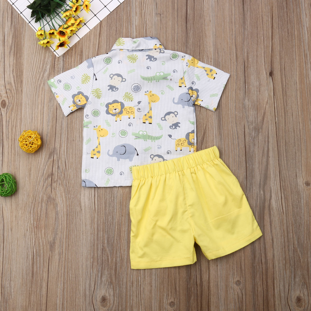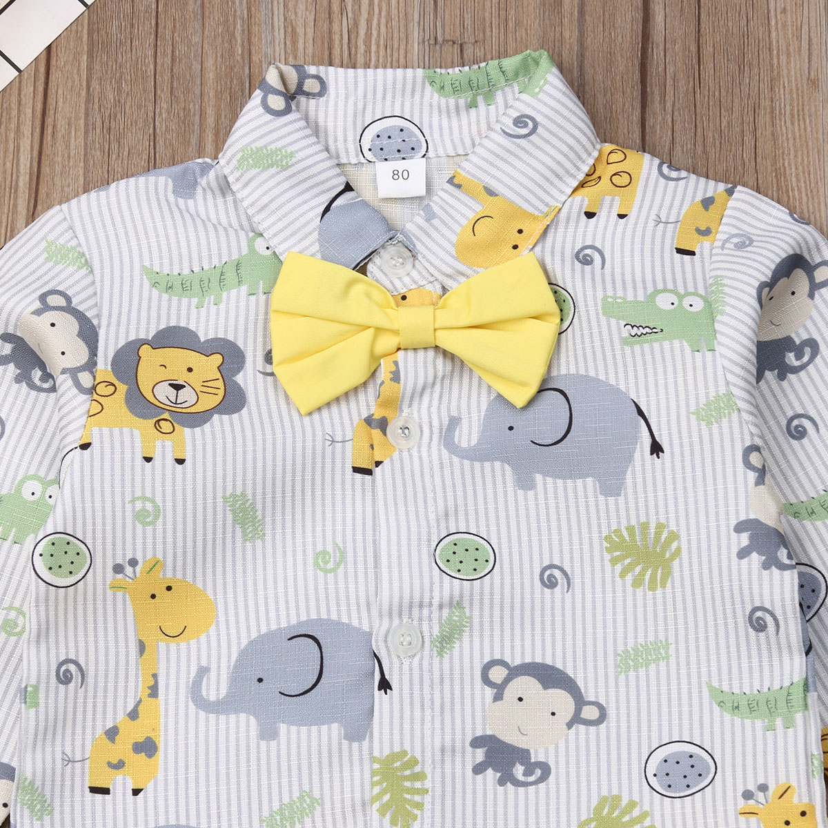 Комплект одежды из 2 предметов для маленьких мальчиков, блуза с воротником в сложенном виде с короткими/длинными рукавами и милым принтом животных, костюм с короткими/длинными однотонными штанами