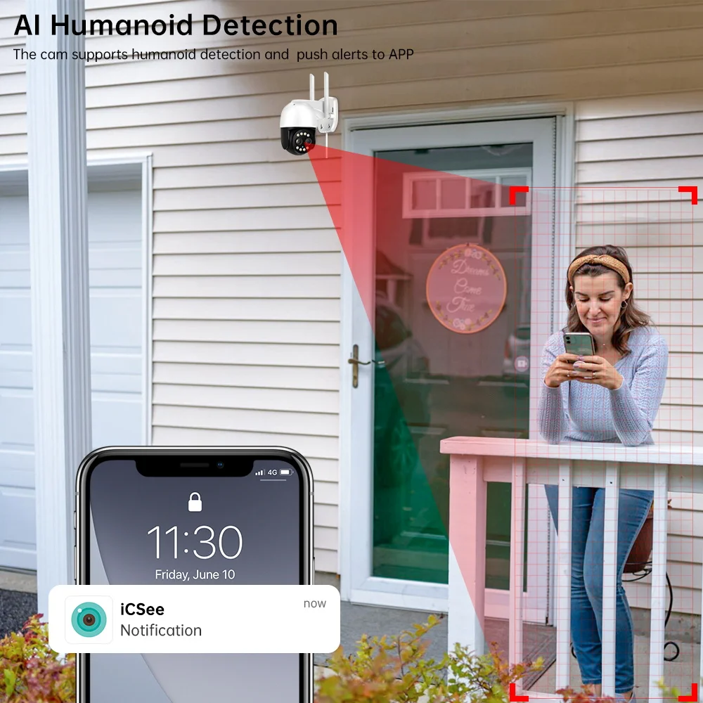 Быстро находит человеческие цели и сразу отправляет уведомление на ваш телефон, позволяя вам увидеть, что происходит в любом месте. Он обнаруживает только человеческую форму и не будет ложно запускать предметы, такие как автомобили и деревья.