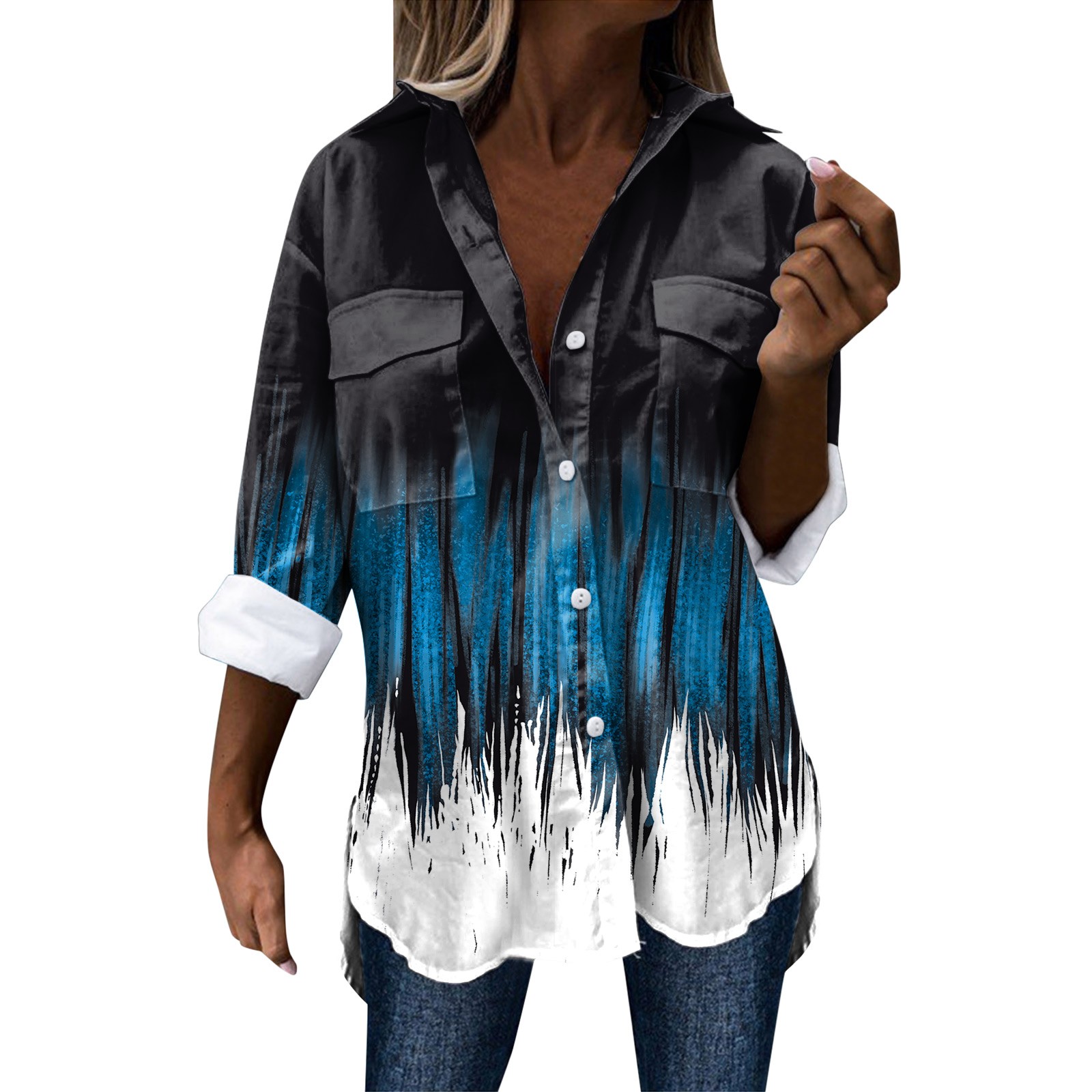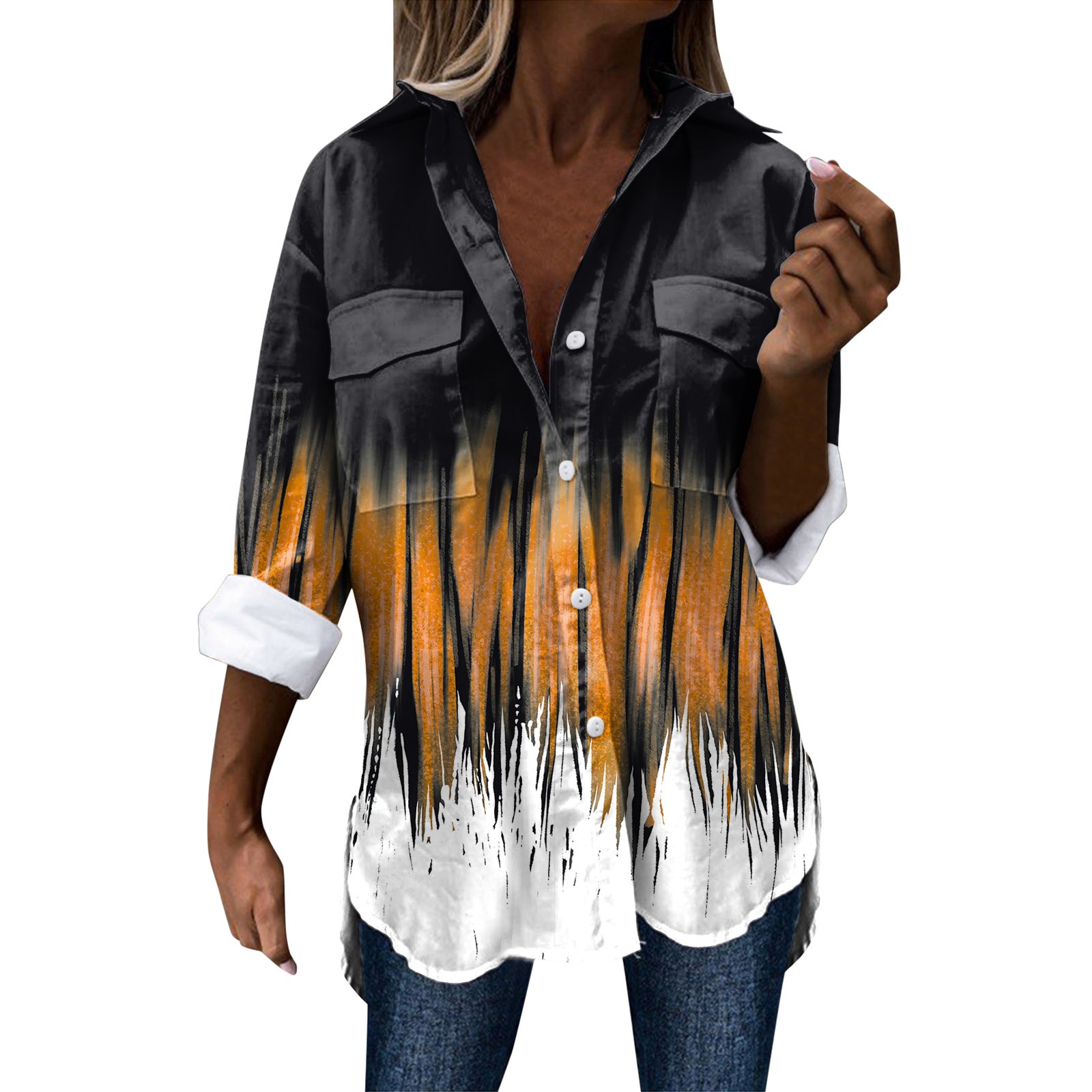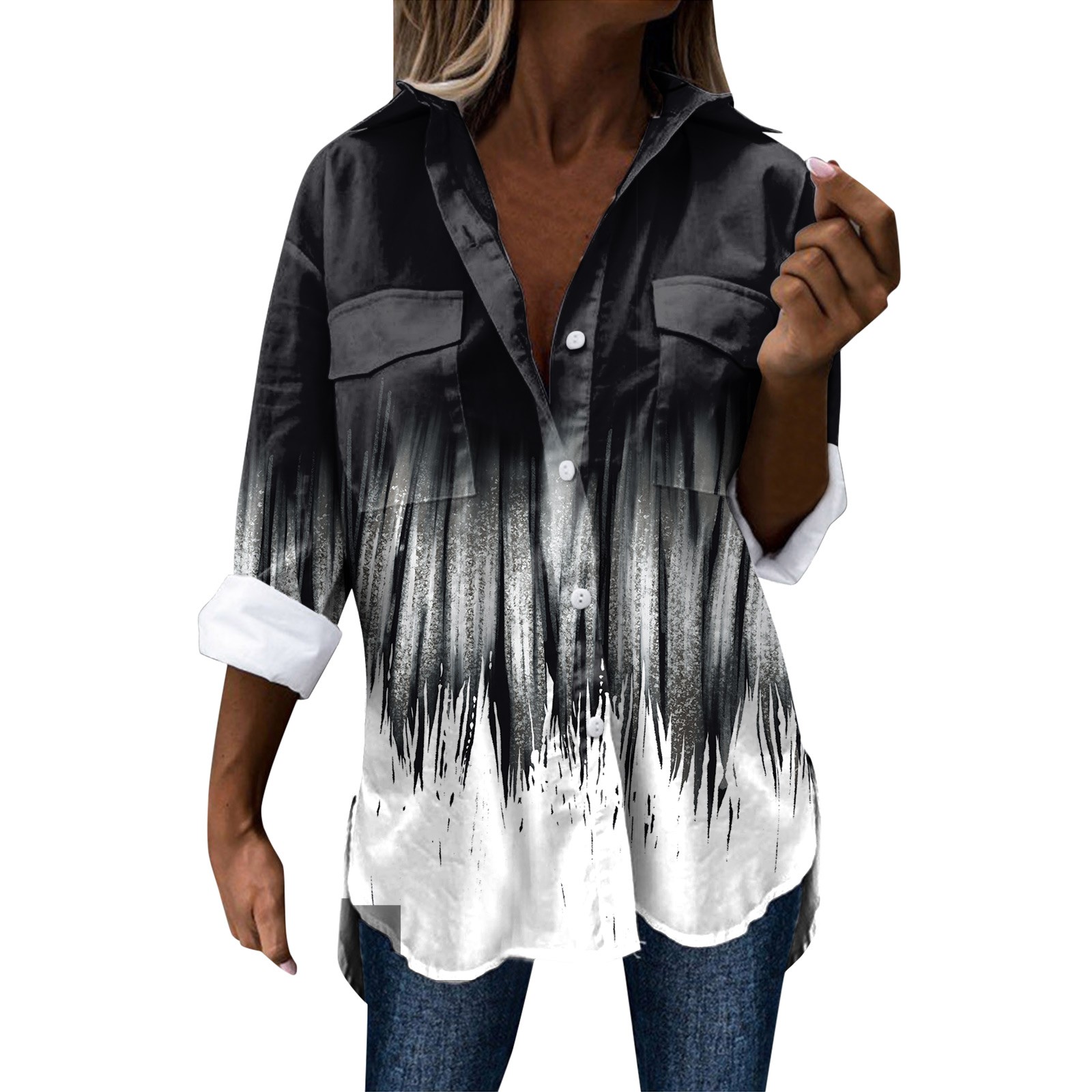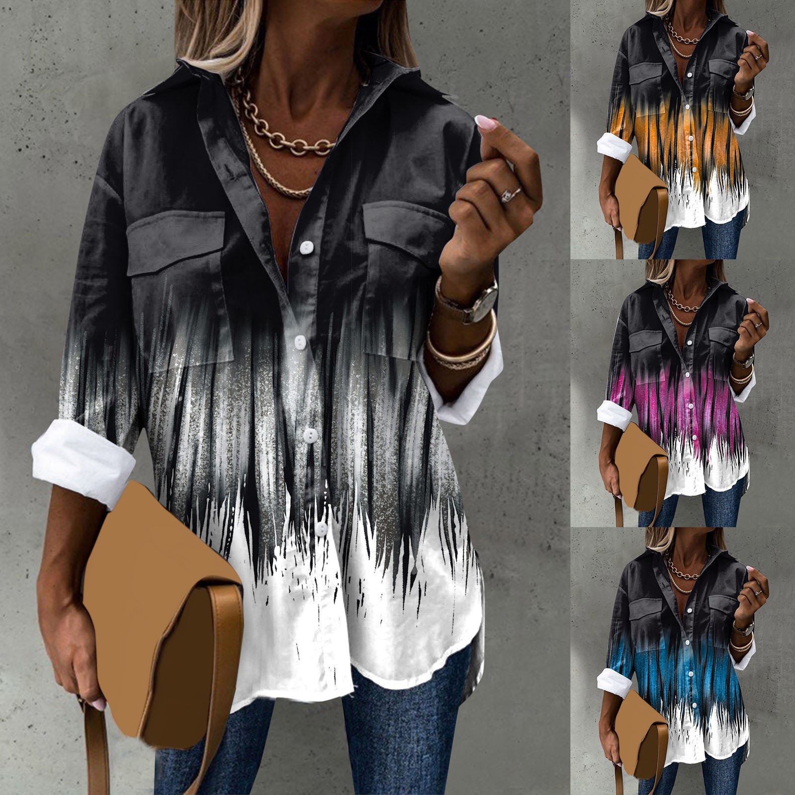 Стиль дизайна: удобный материал, подходит для различных случаев, стильный и модный делает вас более привлекательным Женская элегантная рубашка с длинным рукавом, отложным воротником и пуговицами, модная Повседневная рубашка с цветочным принтом Пожалуйста, обратите внимание, что из-за неустойчивых факторов есть небольшие различия в цвете и размере