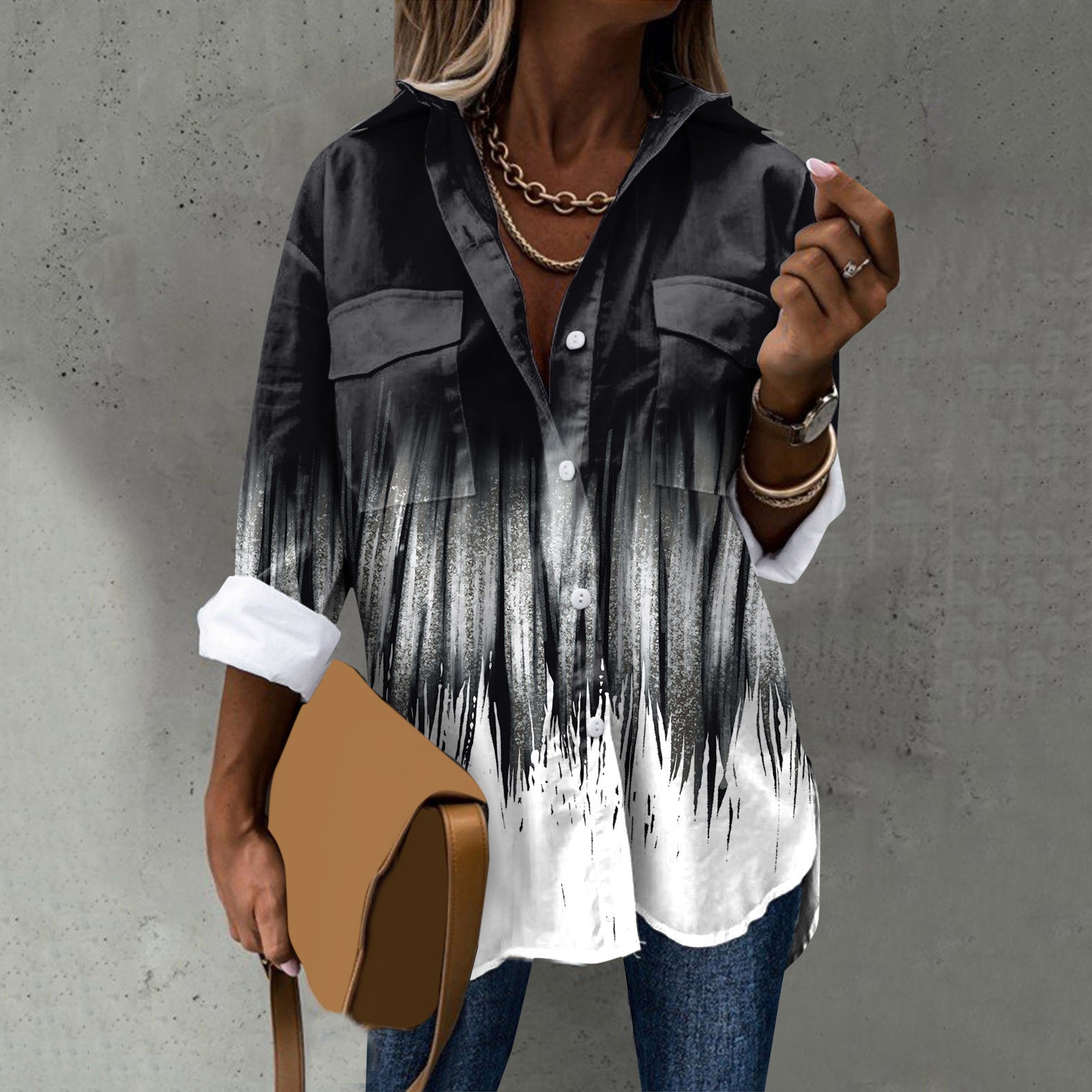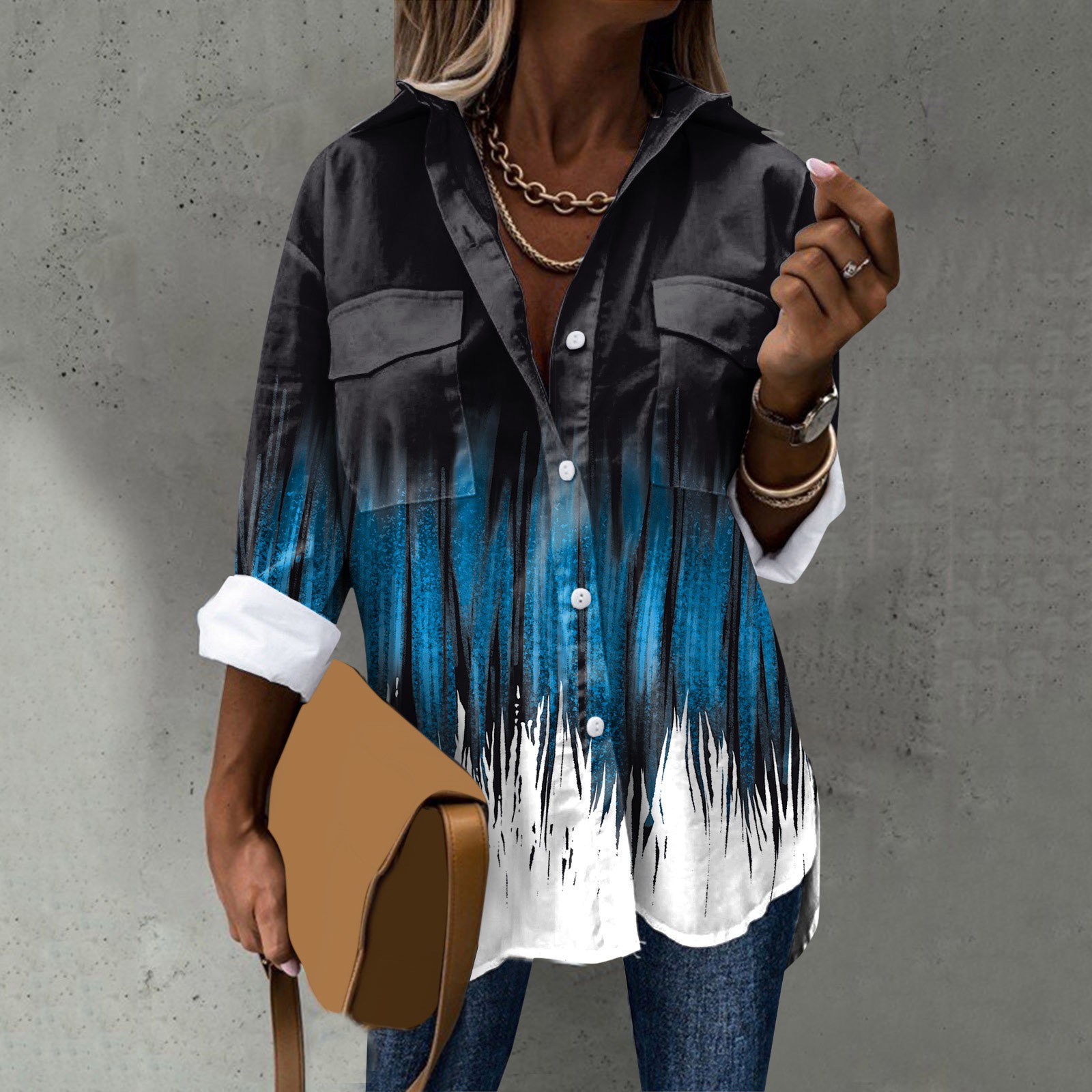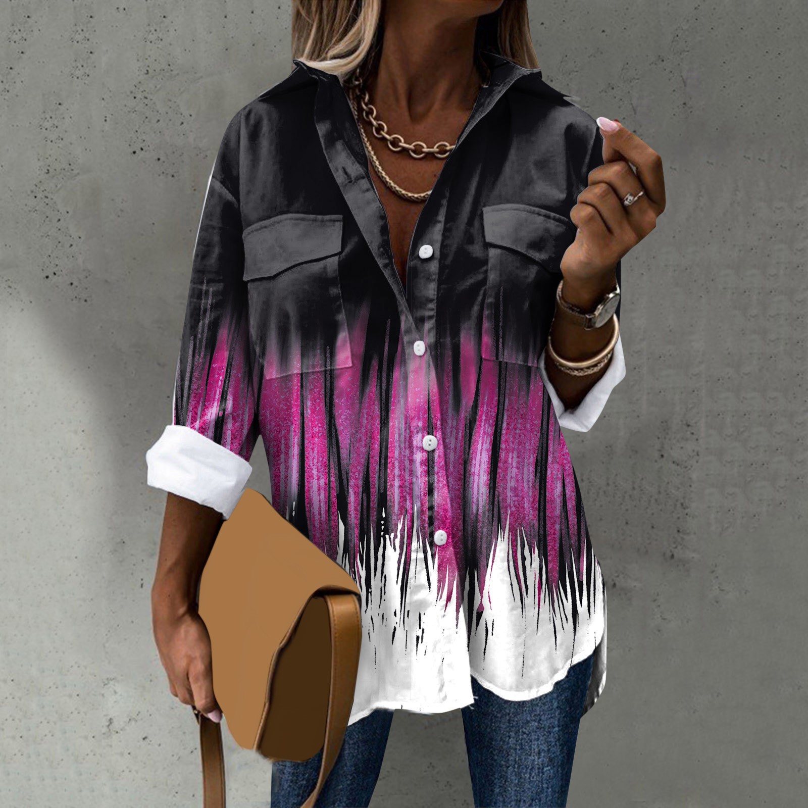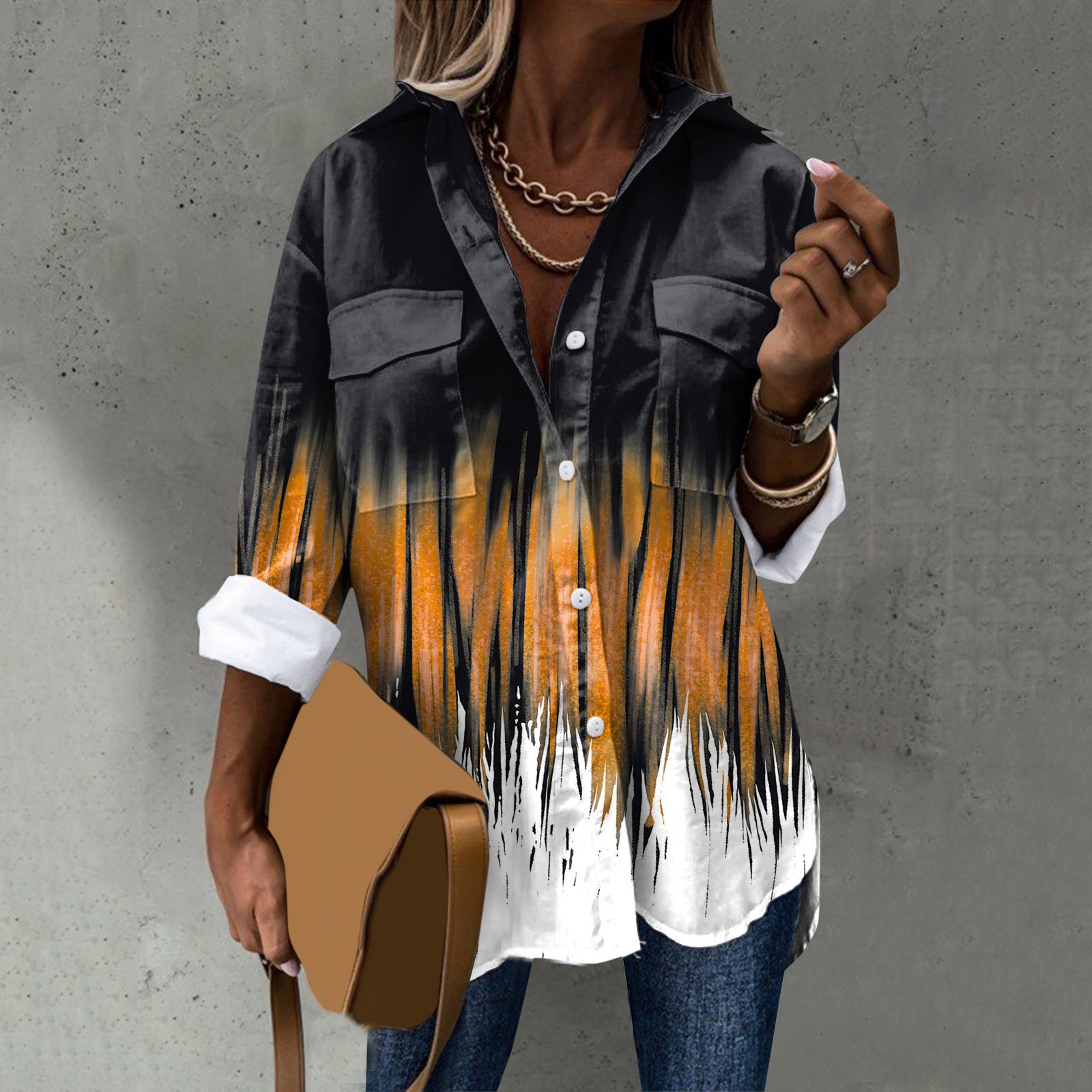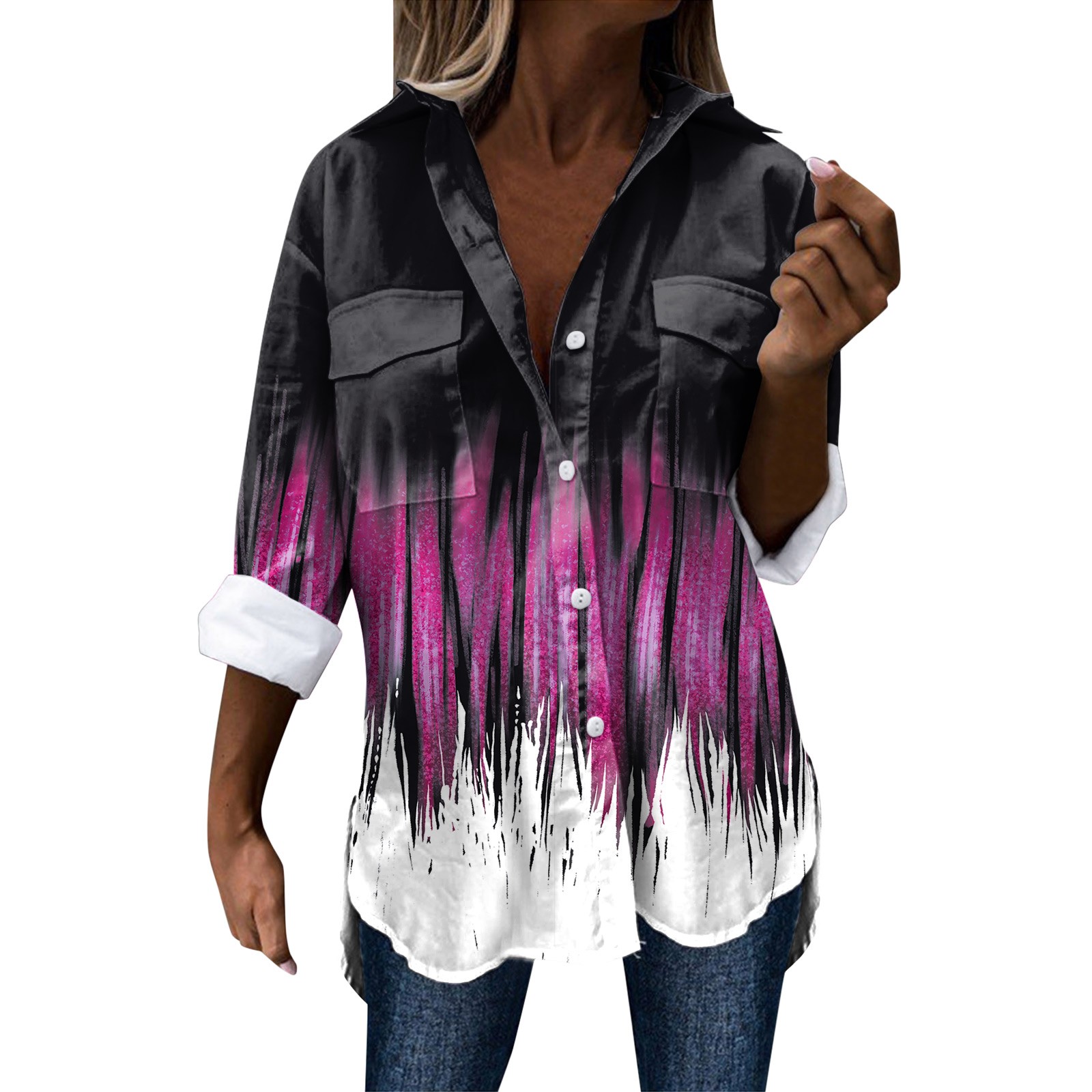 Стиль дизайна: удобный материал, подходит для различных случаев, стильный и модный делает вас более привлекательным Женская элегантная рубашка с длинным рукавом, отложным воротником и пуговицами, модная Повседневная рубашка с цветочным принтом Пожалуйста, обратите внимание, что из-за неустойчивых факторов есть небольшие различия в цвете и размере