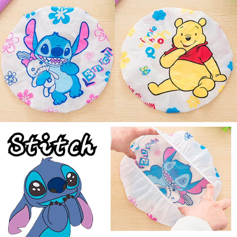 Женская душевая шапочка Disney Stitch с мультипликационным рисунком, водонепроницаемая эластичная шапочка для душа, аксессуары для ванной комнаты, кухонный Чехол для волос с защитой от перегара