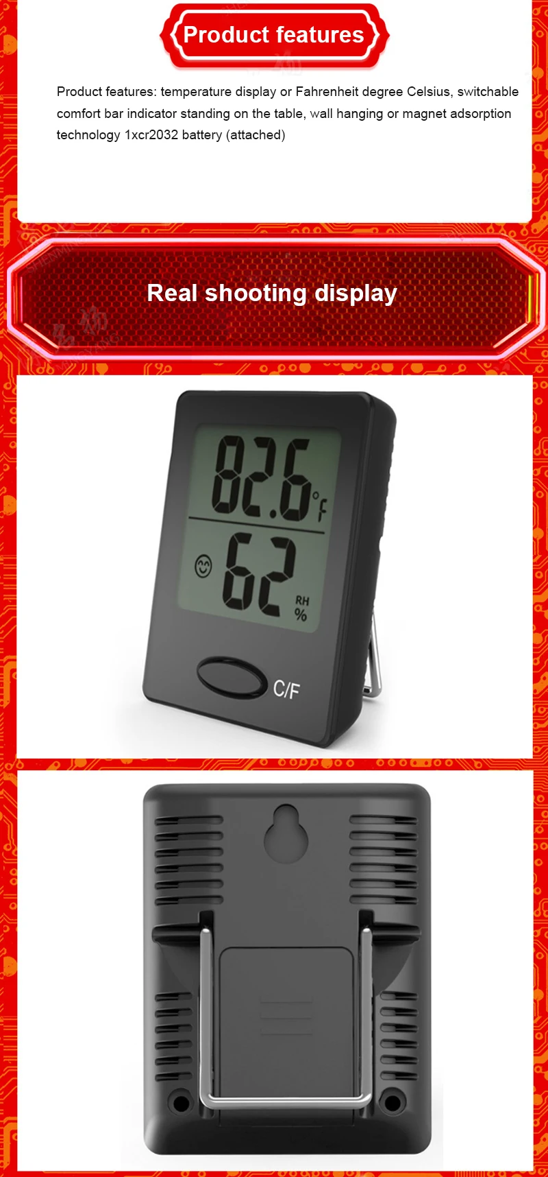 Несколько вариантов размещения-измеритель температуры и влажности имеет металлический кронштейн под задней частью, который открывается, чтобы держать в помещении на открытом воздухе гумидистат стоя на вашем столе. С сильными магнитами на спине, датчик влажности температуры может быть легко прикреплен к двери холодильника для удобного хранения и как достойное украшение. Датчик температуры и влажности имеет подвесное отверстие в верхней части спины, чтобы вы могли разместить его на крючке на вашей кухне, чтобы отслеживать воздух в комнате.