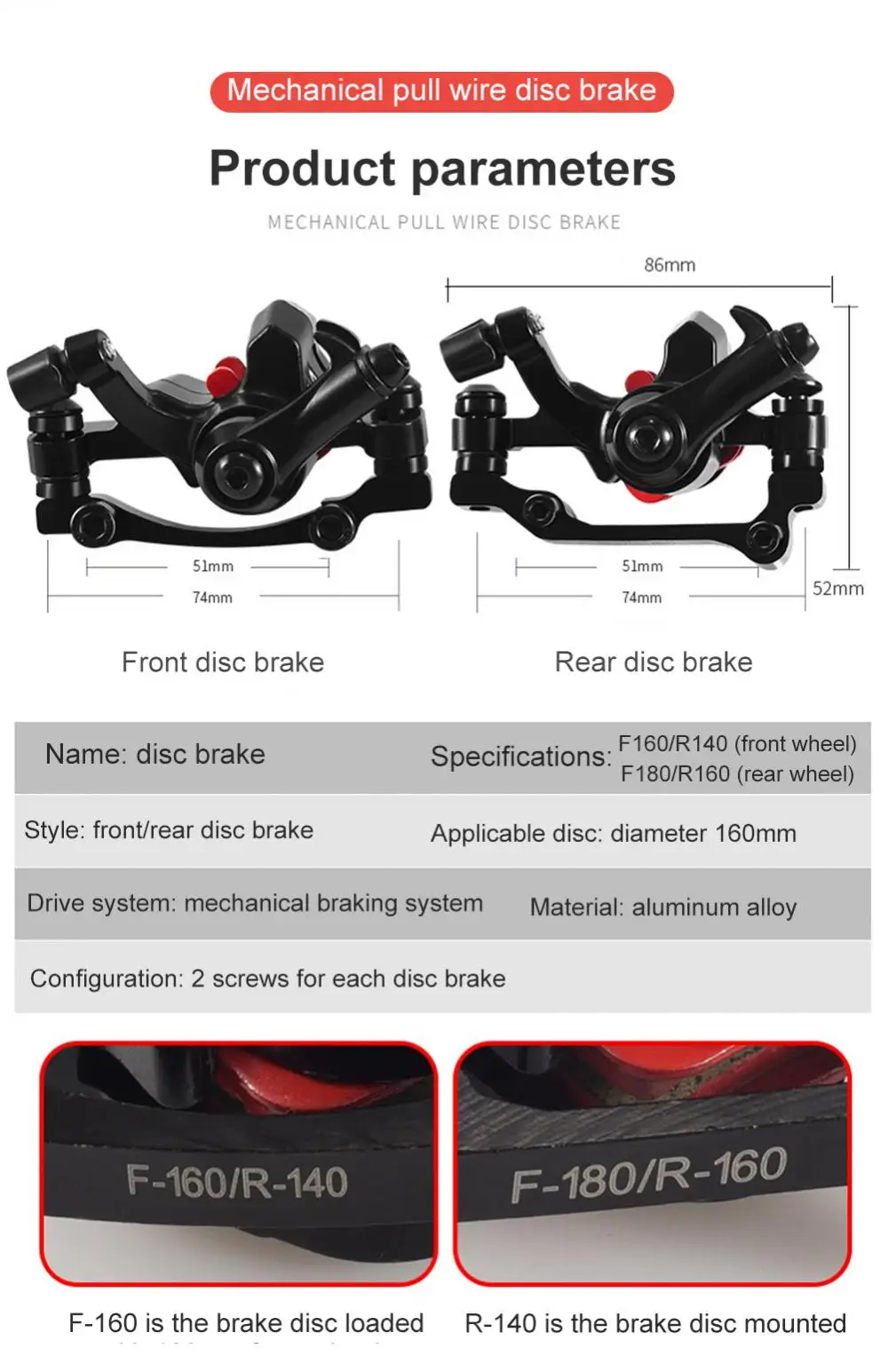 Передний/задний дисковый Тип дискового тормоза, механический разрядник Alufer F180/R160, велосипедный дисковый тормоз, Аксессуары для велосипеда F160/R140